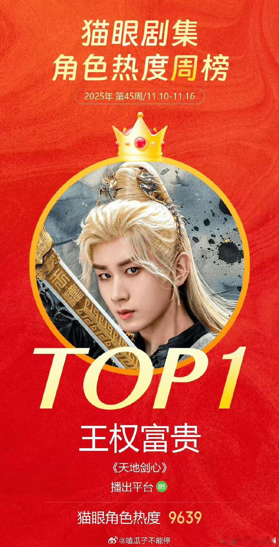 成毅王权富贵连续四周登顶全网角色热度第一!好棒