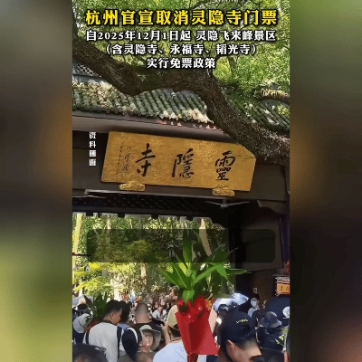杭州官宣!灵隐寺2025年免费开放,年省300万香火钱 11月18日,杭州西湖风景名胜区管委会宣布重大惠民政策:自2025年12月1日起,灵隐飞来峰景区(含灵隐寺、永福寺、韬光寺)取消门票收费。这意味着游客每年可省下300万香火钱,直接提升杭州文旅吸引力。 景区将新增"禅修体验中心"和"文化讲解机器人",游客可免费参与抄经、闻香等沉浸式活动。同时推出"灵隐智慧导览"小程序,提供增强现实导航、历史典故语音讲解等服务。携程数据显示,消息发布后杭州相关酒店预订量暴涨170%,有旅行社紧急设计"灵隐+西湖"联游路线。 "这才是真正的'佛系惠民'!"市民张先生表示,计划带外地亲友体验"千年古刹+山水园林"一日游。文化学者指出,免费政策将推动杭州从"门票经济"向"全域旅游"转型,预计带动周边消费超50亿元。 你期待在灵隐寺体验哪种文化项目?点赞支持惠民政策,转发分享省钱攻略,评论区推荐你心中的"杭州必打卡地"~