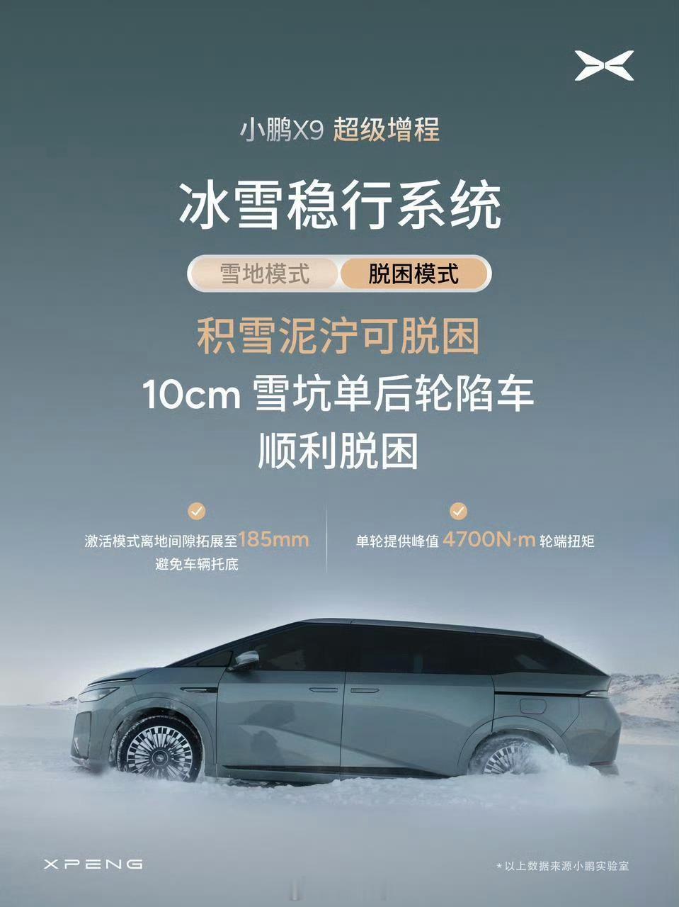 后驱车敢说雪地走得稳,有这个底气大多数都是因为这些后驱车型带后轮转向,再配合上扭矩控制可以做到一定程度的打滑抑制和路线纠偏,但至于脱困能力我觉得效果应该没那么明显,毕竟后驱。小鹏X9是不是真的有这个实力,我倒想测测看,毕竟咱是原生东北汽车博主,没有人比我更了解冰雪