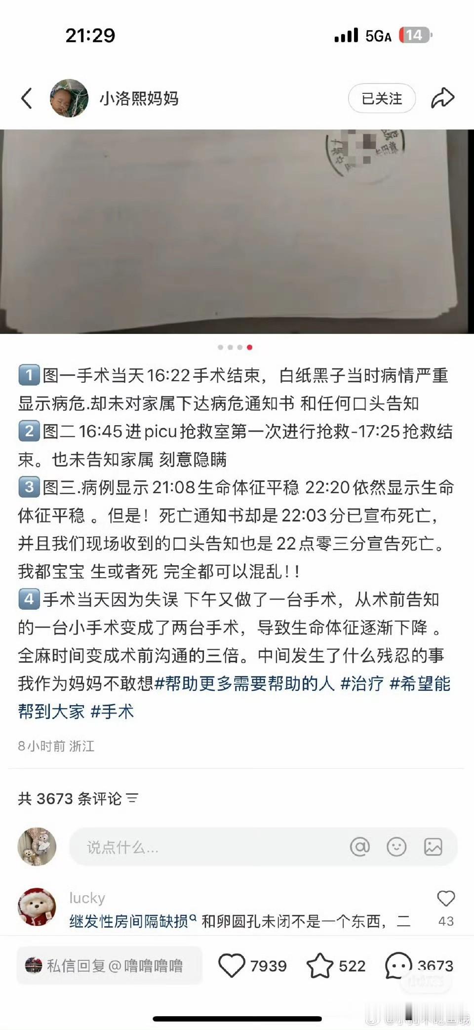 “女个月女婴疑在宁波妇幼做微创手术去世”! 真是看不得这种新闻,心里太难受了😭 太可怜了,妈妈的一生都要泡在眼泪里了。话说回来,卵圆孔未闭这个问题不是可以观察到一周岁后再衡量吗,现在小儿科的手术也挺泛滥的,腺样体肥大,扁桃体反复发炎这类问题,激进一点的医生都会建议直接切除。微创对于医生来说好像挺简单,对于孩子个体,手术过程中的不确定因素太多,还是需要慎重权衡。 而我们最无法接受的,就是“不明不白”。家长需要的不只是一纸冷冰冰的“死亡证明”,而是一个负责任的、透明的调查过程。每一步是为什么,发生了什么,问题出在哪里。任何含糊其辞、试图推卸责任的说法,都是在家长和我们这些旁观妈妈的心上再插一刀。 ​ 希望能尽快调查清楚,给可怜的孩子一个公道!