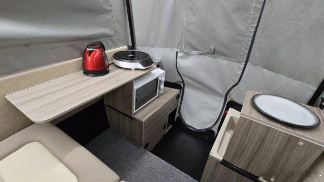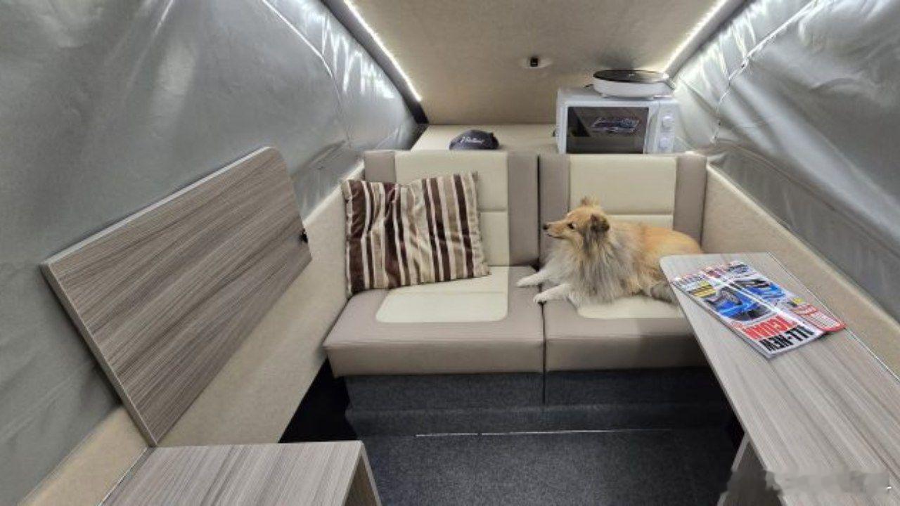当你设计了一个失败的作品,却又舍不得放弃它,接下来该怎么办呢?对于设计师斯蒂芬·惠勒来说,这个问题的解决极具创造性:她先是设计了一款应用在Model 3车顶上的背驮式 ,在替代尾门后,形成一个巨大的睡卧空间,不光配有桌板、外置电池,甚至还有便携式厕所但最终,这个设计并未获得成功,于是乎,惠勒灵机一动,直接放在拖挂房车的单轴底盘上,最终在车长3.8m的情况下,整备质量仅340kg,随便一台车都能拖动改成拖挂房车后,升降顶行程进一步增加,以实现成人能站立的内高,并且配置升级到小冰箱、双人床、带电水泵的10L水箱、便携厕所、2.6kW逆变器、更大的驻车电源、200W太阳能充电板,从而在离电状态下露营两天价格也随之水涨船高,29860欧元(约24.56万元)的起价,购买一台还不错的小电车了