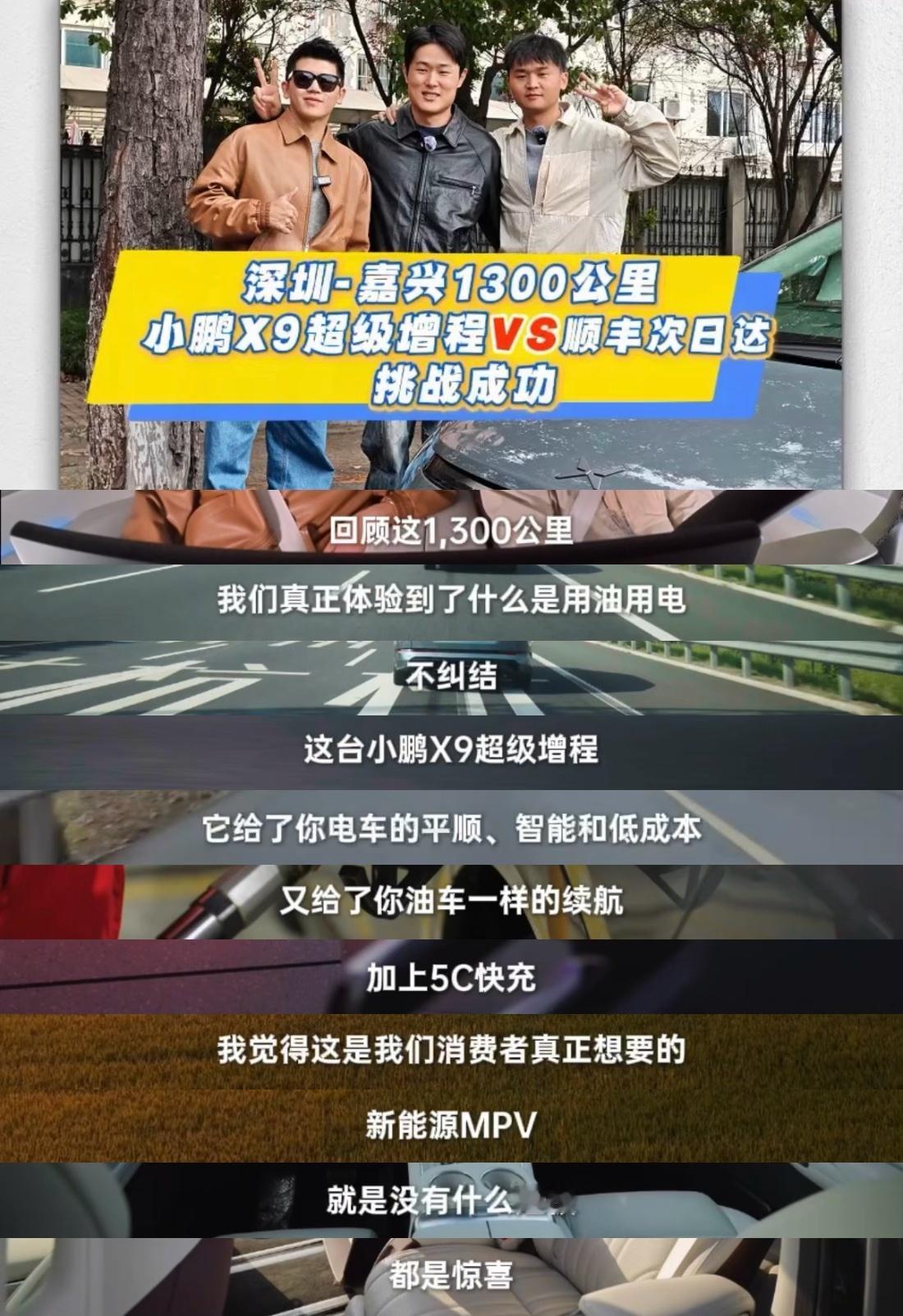 日行千里,极限挑战!小鹏X9超级增程挑战“顺丰次日达”,全程不加油、不充电,从深圳到嘉兴疾驰1300公里!凭借全球综合最长大七座1602公里超长续航,成功抵达,终结里程焦虑!作为“下一代增程”,小鹏X9既能实现日常“纯电一周一充”,又能满足长途“千里无忧”,用实力诠释大七座车型的全新出行体验。