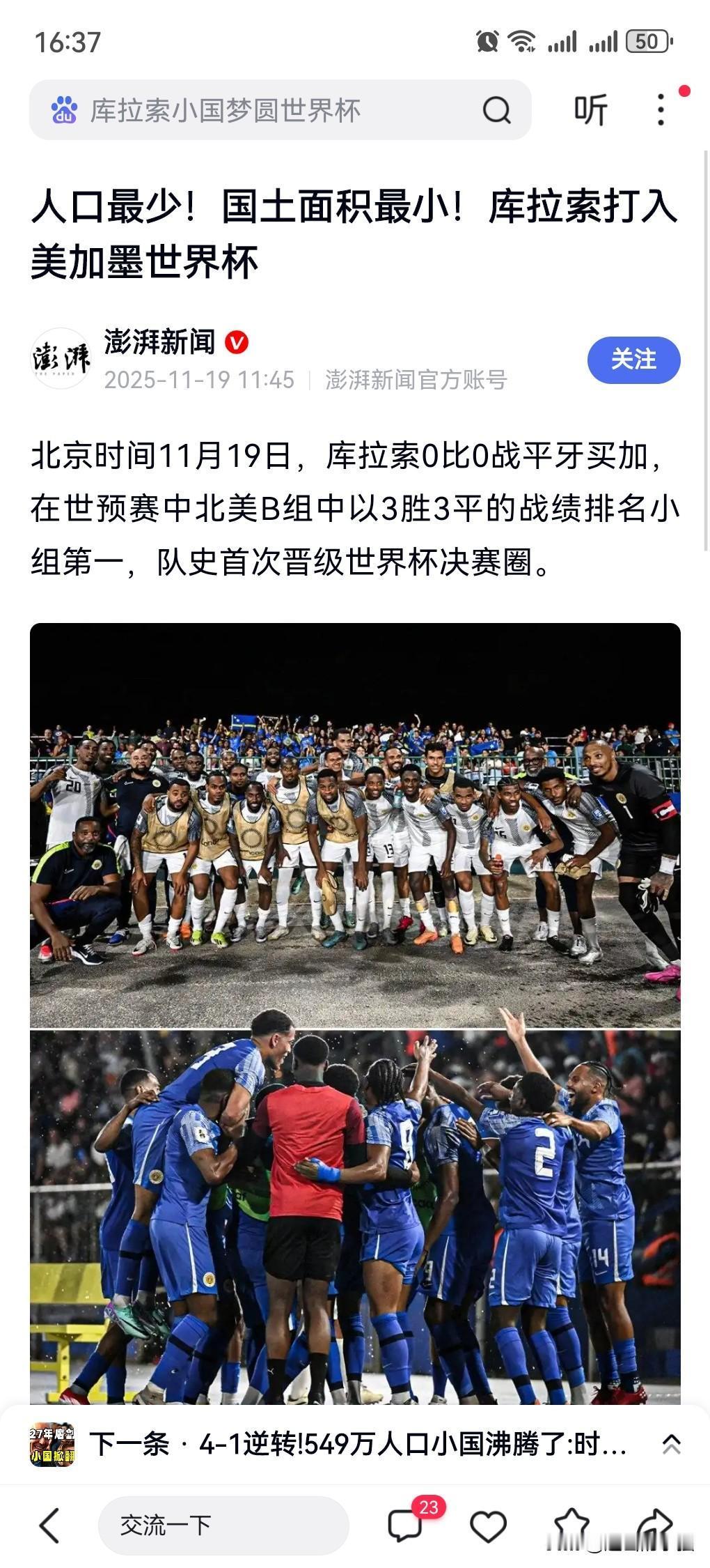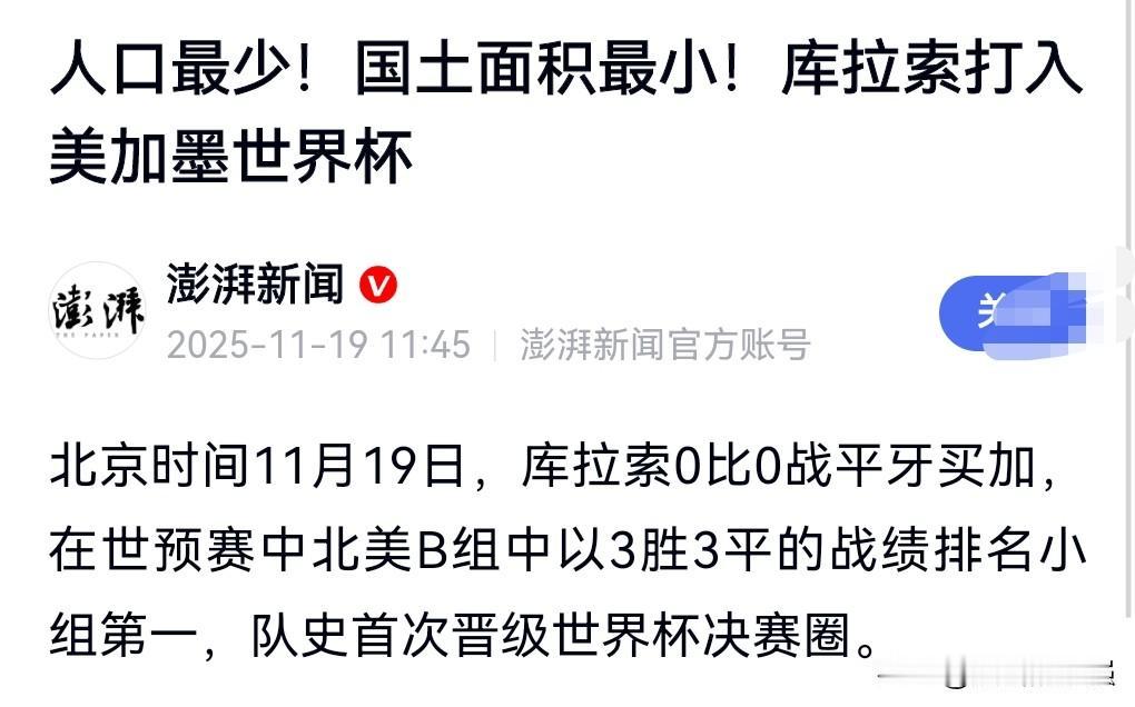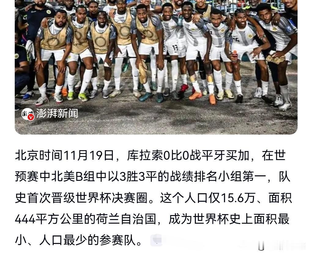 这也太扎心了吧,这真的是让国足情何以堪啦。 我们做梦都想进世界杯。 人口不到16万小国库拉索打进世界杯,没有对比就没有伤害呀? 人口不到60万的小国竟然打进了世界杯。你敢想吗?你敢信吗? 我们堂堂14亿人口的大国,有时候却很难进世界杯。 这找谁说理去? 差距太大了。