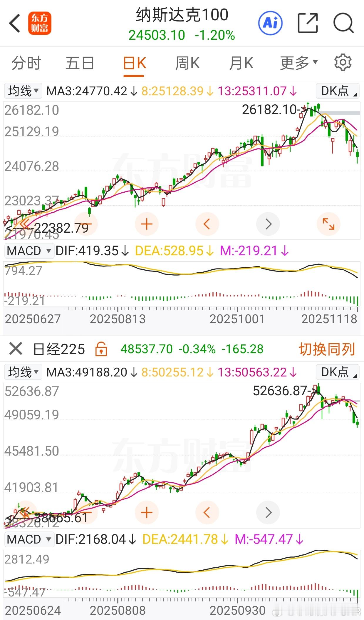 又到海外市场捡漏时机 别犹豫错过2025/11/19/非常观点|核心提示:1、A股再度步入无效交易时间,简言之,就是只要一动手,必亏无疑,别看周三微红,毫无意义,量能至缩1.7万亿,存量自娱自乐,该走的义无反顾,超500亿资金抽逃,小散没有这样的合力,全年收官仅剩月余,不要指望还有翘尾发红包行情,守住账户中那些残利就烧高香了。2、涨多跌少的美股近期持续震荡调整,此前未涉及该类基金的大可逢跌逢低分批介入,采取新低下台阶越跌越买策略,希望能快速完成底仓布局,机不可失,或许这次捡漏能意外收获一个过年红包。3、日经225本次反应明显过头,作为跨境优质标的完全可以成为纳指的补充,别老盯着自家一亩三分地,人家不是新高就是在新高的路上,好不容易逮到一个换挡加油的机会,就得珍惜,不然过了这个村还真没那个店。文中图例仅供参考,不作推荐用。