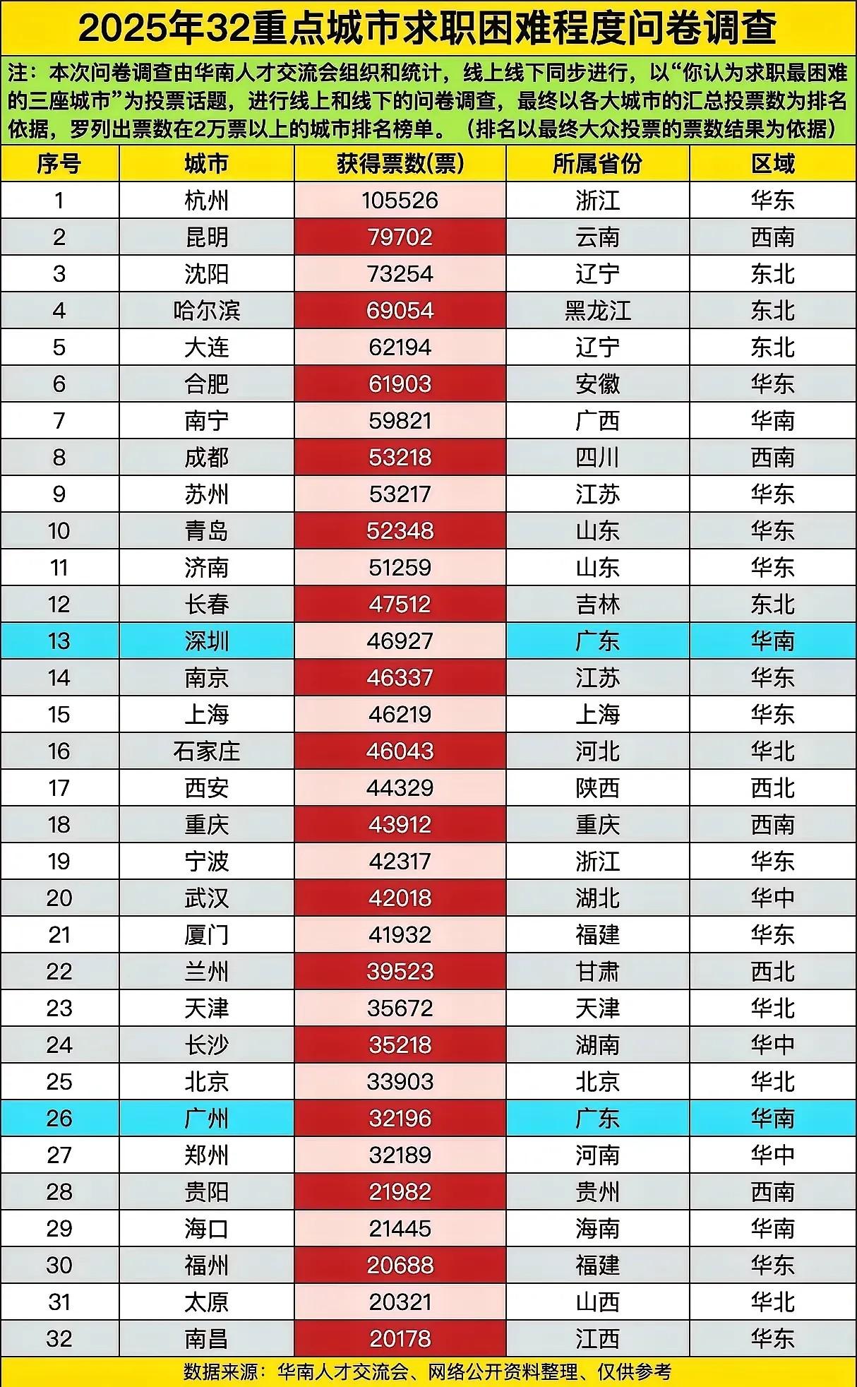 全国求职难度问卷调查,昆明求职难度排在第二,仔细想想这好像也没毛病。 之前看过好