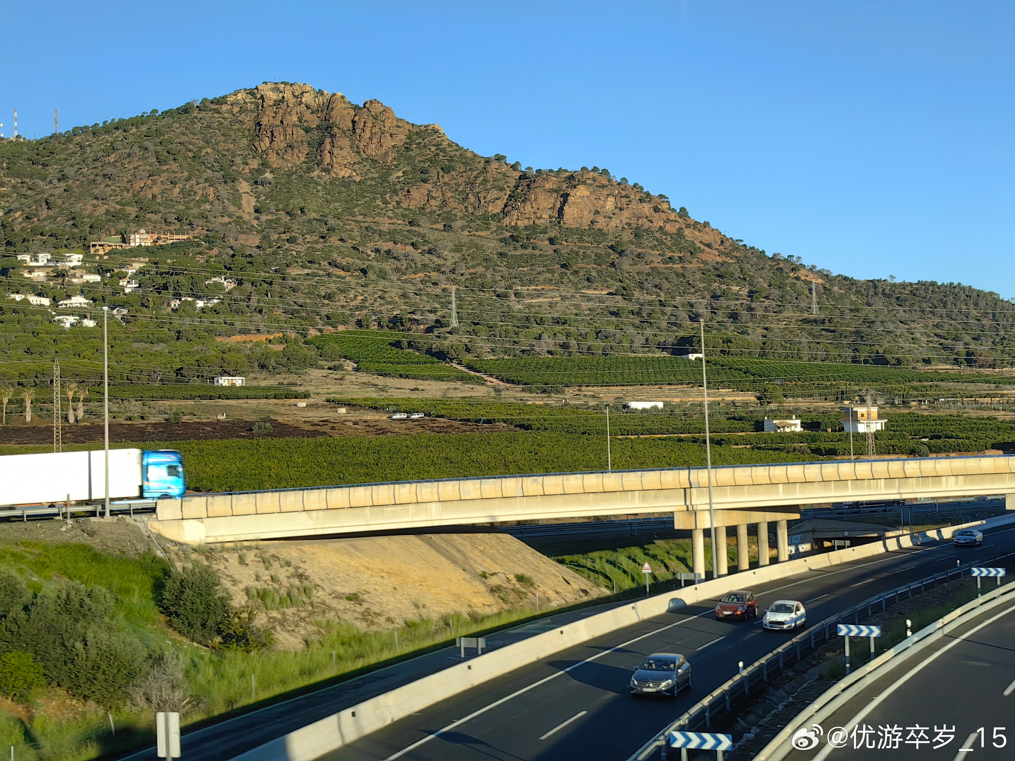 车子沿着地中海海岸线一路向南,公路两侧是铺展至天际的绿意。成排的橄榄树枝叶婆娑,银绿色叶片在阳光下泛着柔光,沉甸甸的橄榄缀满枝头,是地中海饮食的灵魂基底;或者是成片的橙树,金黄果实挂满枝桠,果香混着草木清香漫入车窗。这些作物顺着地形绵延,在阳光与海风的滋养下蓬勃生长,不仅为沿途勾勒出明快生机的画卷,更以饱满的产量满足着欧洲大陆对橄榄油与鲜橙的常年需求,让自然馈赠成为连接山海与市集的温柔纽带。