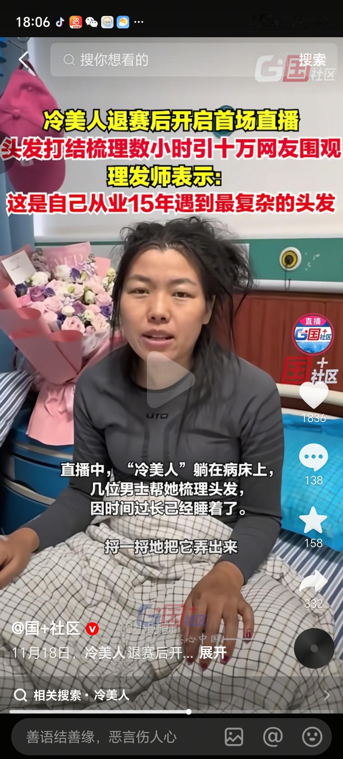 看到1442.3万人一起看冷美人直播洗头发,我勉强按住自己抽搐的嘴角。不就是37天没洗头发嘛,不就是头发打结6小时没梳开嘛,不就是换了5盆水嘛。至于嘛,至于嘛?这是啥新鲜事情吗? 生过孩子、坐过月子的女人谁还没经历过一个月没洗头发的事情,两个月的没准都有。冷美人还是在乎颜面的,反复强调“没有虱子”。这个我是相信的,有虱子就不是洗头了,直接剃光光了。 估计冷美人自己都没想到有一天她洗个头发还能上新闻吧。