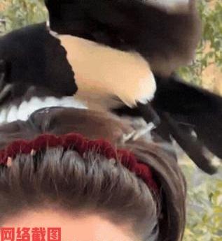 辽宁营口有女生和朋友逛街。 不知路边突然有一只胖胖的喜鹊与女子相会了,还似乎一点不怕生人,女生不由用手触碰了这只喜鹊,不料之后,喜鹊竟然扑棱翅膀,落到女生的头顶上。 这一次把女生惊讶,刚以为这是喜鹊的无意行为,以后喜鹊飞了几圈不断又回到女生头顶来,看样子把女生的头顶当做一块新的鸟巢,这把女生同行的朋友看得直笑,也不知所措帮忙驱赶喜鹊离开。 众人看到此事后也就是新奇不已,这是喜鹊认主,还是女生头顶上有喜鹊熟悉的味道,或许有人说喜鹊这是熟悉了所处的生活环境,并未认为人类会给它带来伤害,所然盯住女生的头顶一番磨琢。 毕竟喜鹊寓意美好,我们全当着是一种美好的寄望,在与喜鹊的互动里让心情高兴一会儿,看喜鹊最可爱的地方活跃一下现场的气氛,为一天的美好生活充满向往打足力气。
