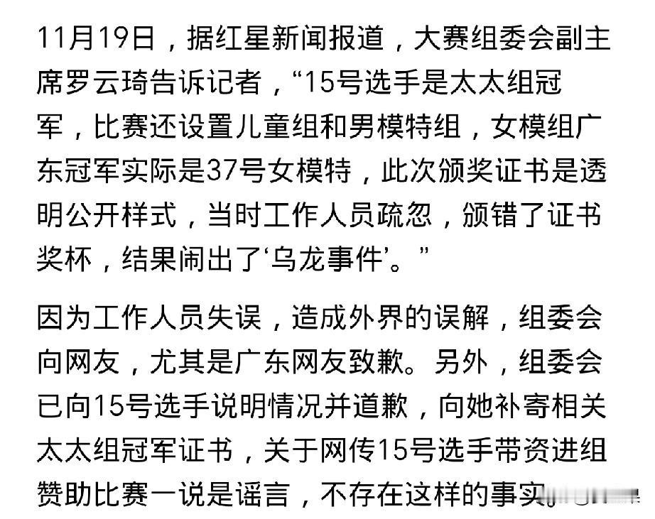 原来她是太太组冠军啊, 这就通了,我说这位参赛选手在整个比赛过程那么有气质,既有风韵,又有自发的笃定和自信。 真的,在太太组里,看过程表现,她是当之无愧的冠军。 根据组委会介绍,当时的比赛一共有四个组,一个是太太组,一个是男模特组,一个是女模特组,还有儿童组。 女模特组另有其人。 如果是这样,还挺好的,各年龄段都可以参赛,甚至还可以增加一个老年组。 独乐乐不如众乐乐, 趁着国际模特大赛举办些大众都可参与的活动,难道不应该提倡吗?