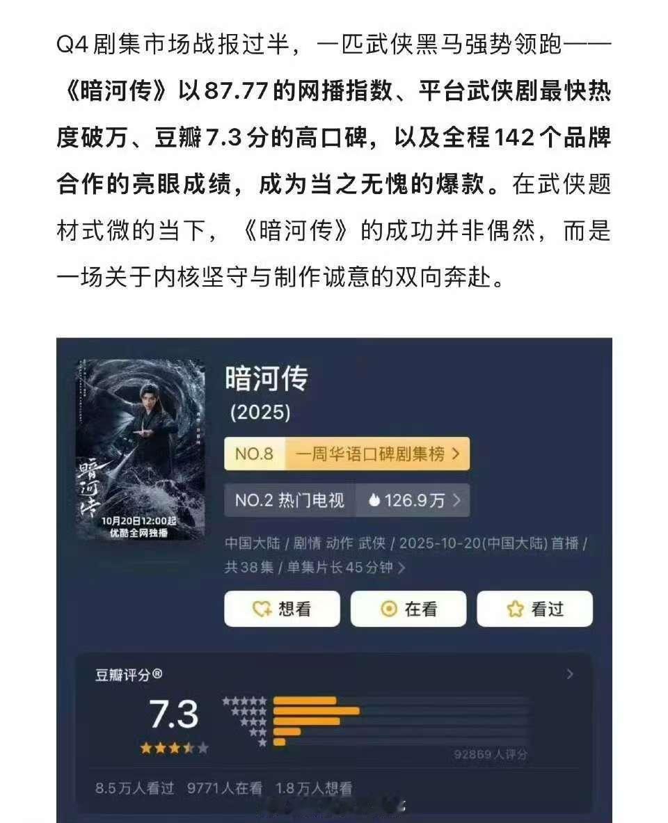 V榜认证龚俊暗河传Q4剧集爆款,不错,