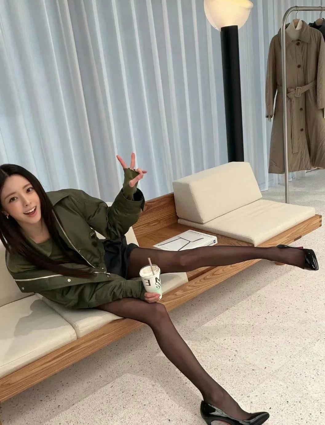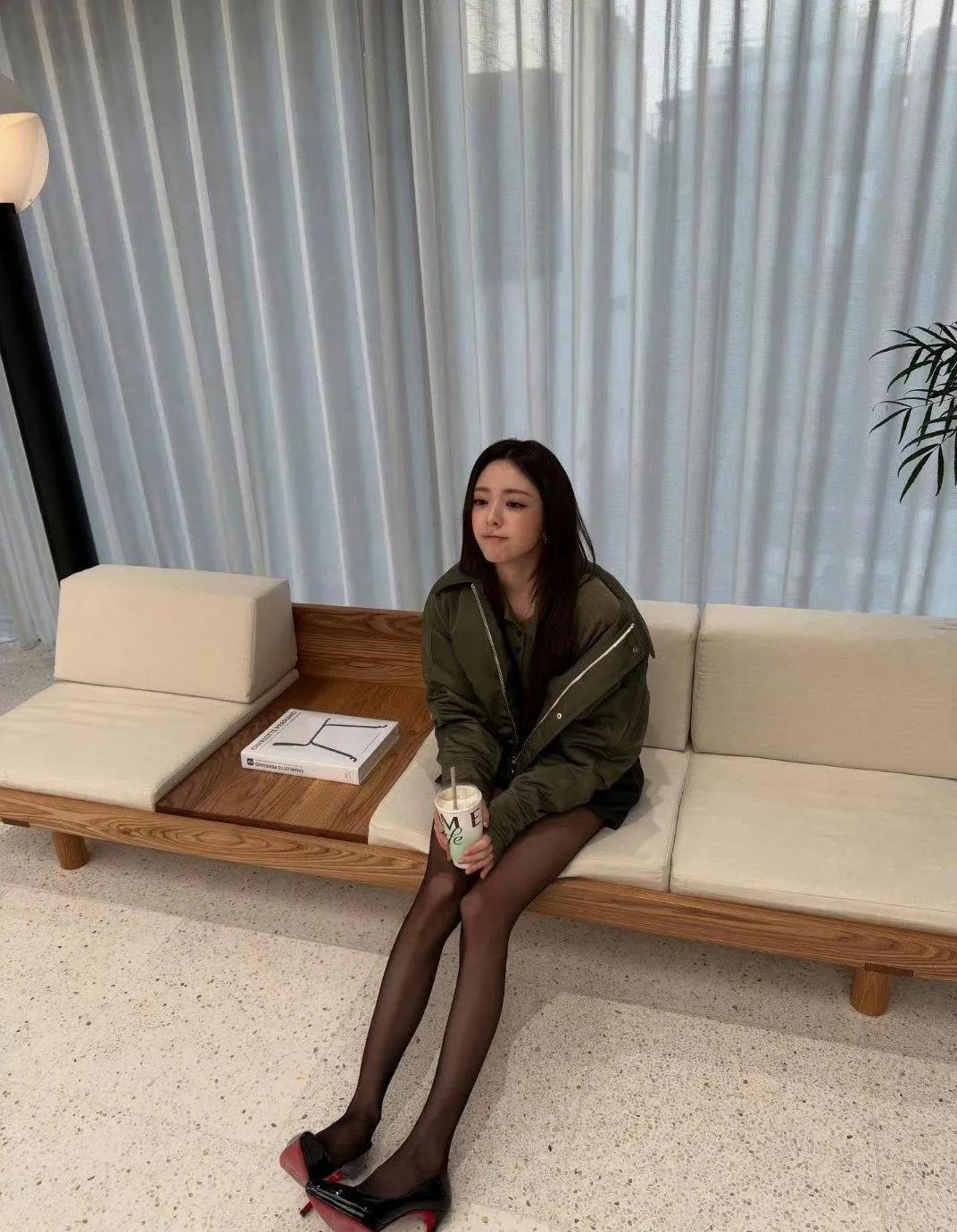 申宥娜的黑丝穿搭,把“纯欲飒”玩明白了! 黑丝配高跟,再搭军绿外套,甜酷又带感,这腿这风格,谁能不爱!申宥娜 黑丝穿搭