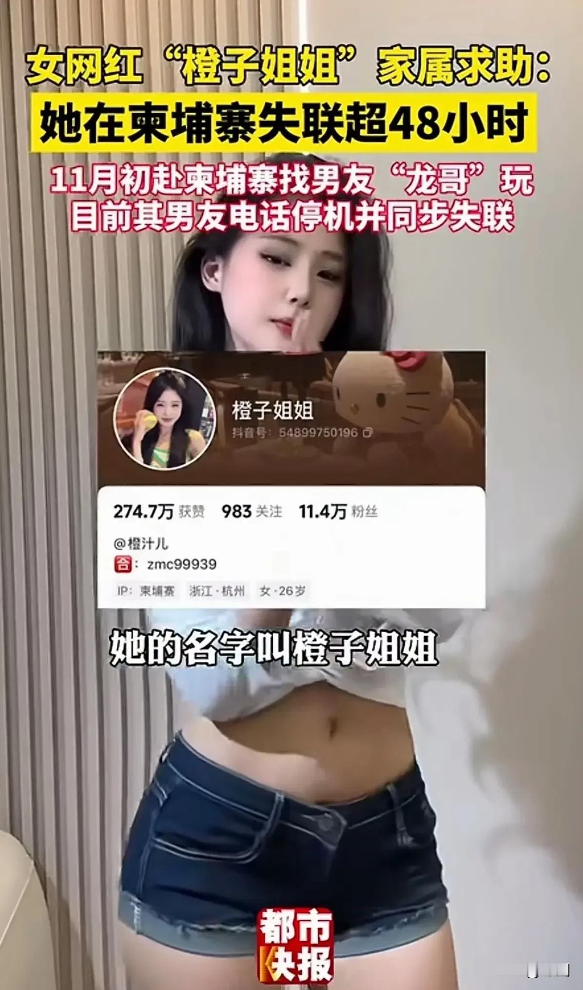 网红“橙子姐姐”在柬埔寨金边地区失联7天,以为被男友拐卖,今日确认其涉嫌网络诈骗和人口贩运被柬埔寨警方逮捕羁押。事发11月19日,柬埔寨警方通报,一名中国女子张慕澄,涉嫌犯罪被抓获。 原来,张慕澄就是网红“橙子姐姐”的本名,其在11月13日就在金边被捕了,警方没收了所有证件和手机,并被羁押审问,法院指控其在2025年10月至11月期间参与多起网络诈骗,并涉嫌从事非法跨境人口贩运犯罪,现羁押于金边白梳监狱,等待进一步审理。 据了解,她于11月初去柬埔寨准备和在金边的男友会面,结果12日家属发现手机关机处于失联状态,随后报警并发布网络寻人启事。直到19日,柬埔寨方面通知国内相关部门,其因银行账户有和当地犯罪团伙的交易,涉嫌犯罪被羁押。 网红橙子姐姐失联7天后被柬埔寨警方羁押