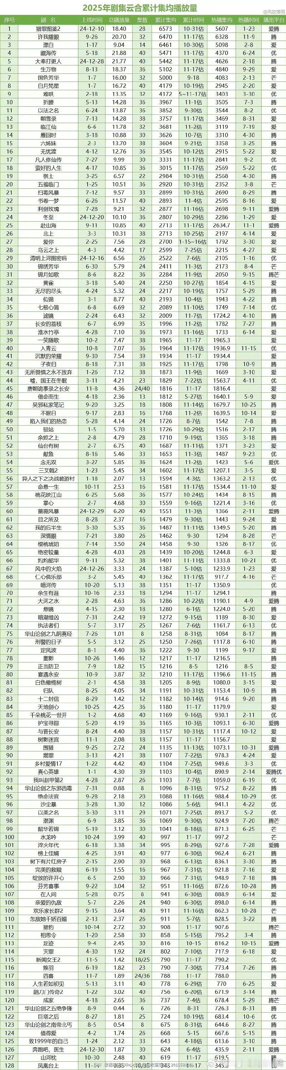 2025年剧集云合累计集均播放量,赵露思《许我耀眼》上线2个月不到就登上了年度第二,感觉过不了多久就会登顶云合,《许我耀眼》现象级大爆剧实锤!