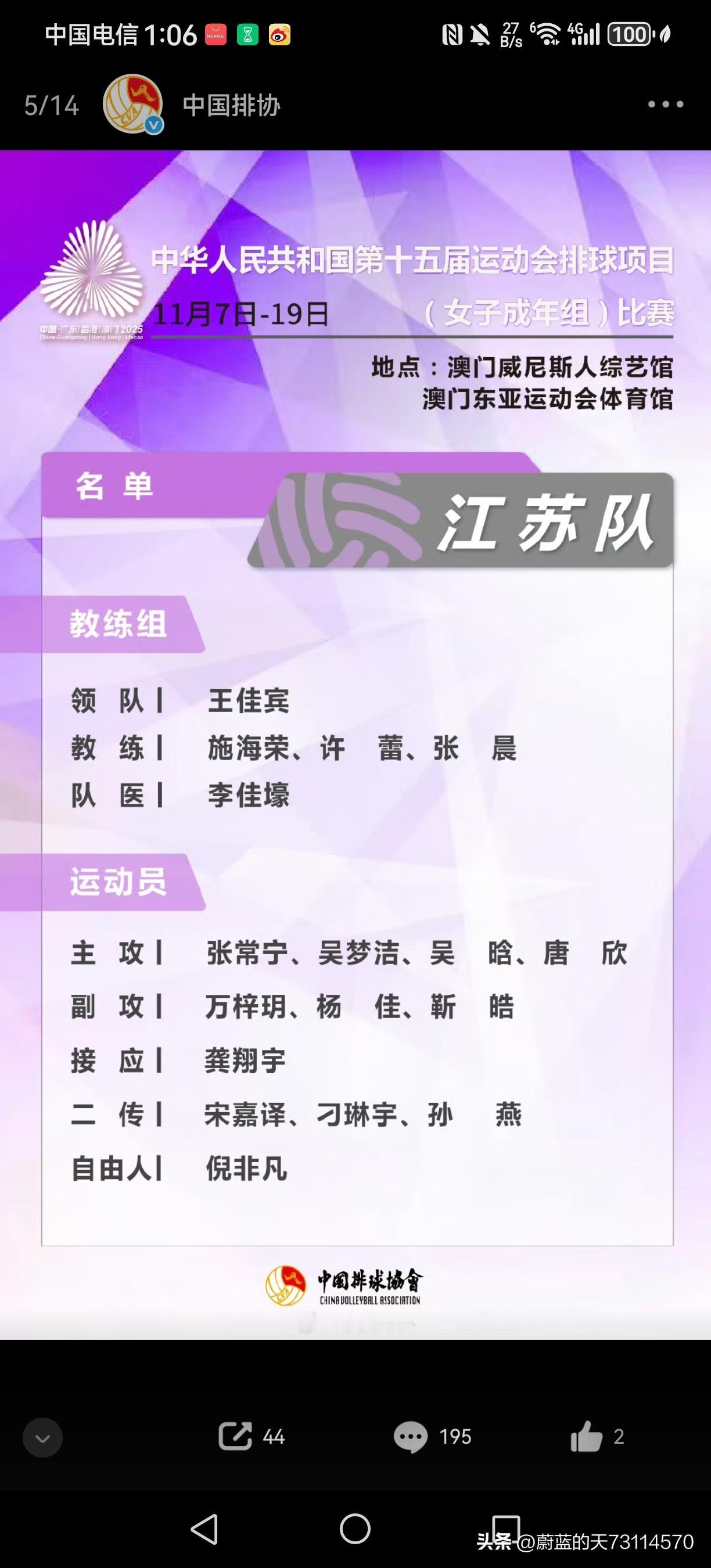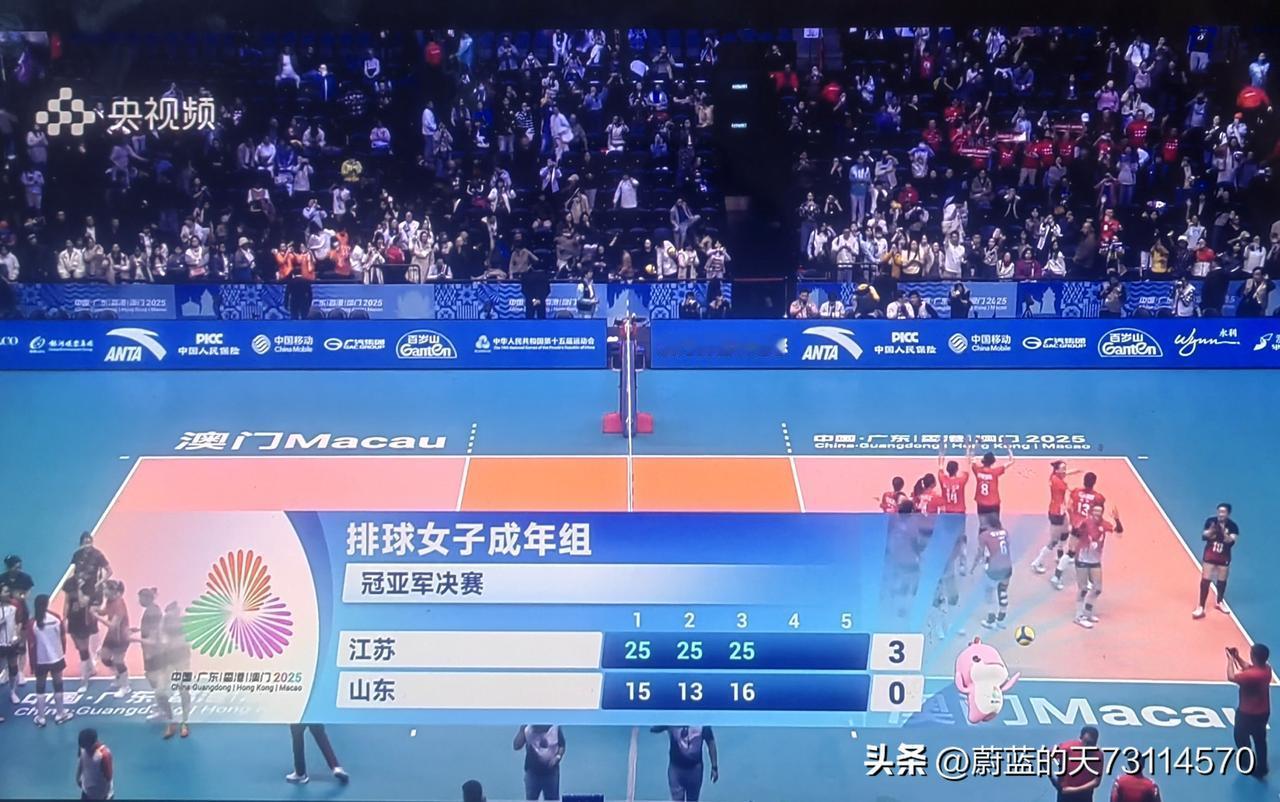 [冠军🥇]赢啦!赢啦!江苏女排群星荟萃,整体实力超群,在全运会上以全胜战绩(决赛中3-0战胜山东女排,25-15,25-13,25-16) 勇夺第十五届全运会冠军。恭喜并祝贺[赞][赞][赞][玫瑰][玫瑰][玫瑰]