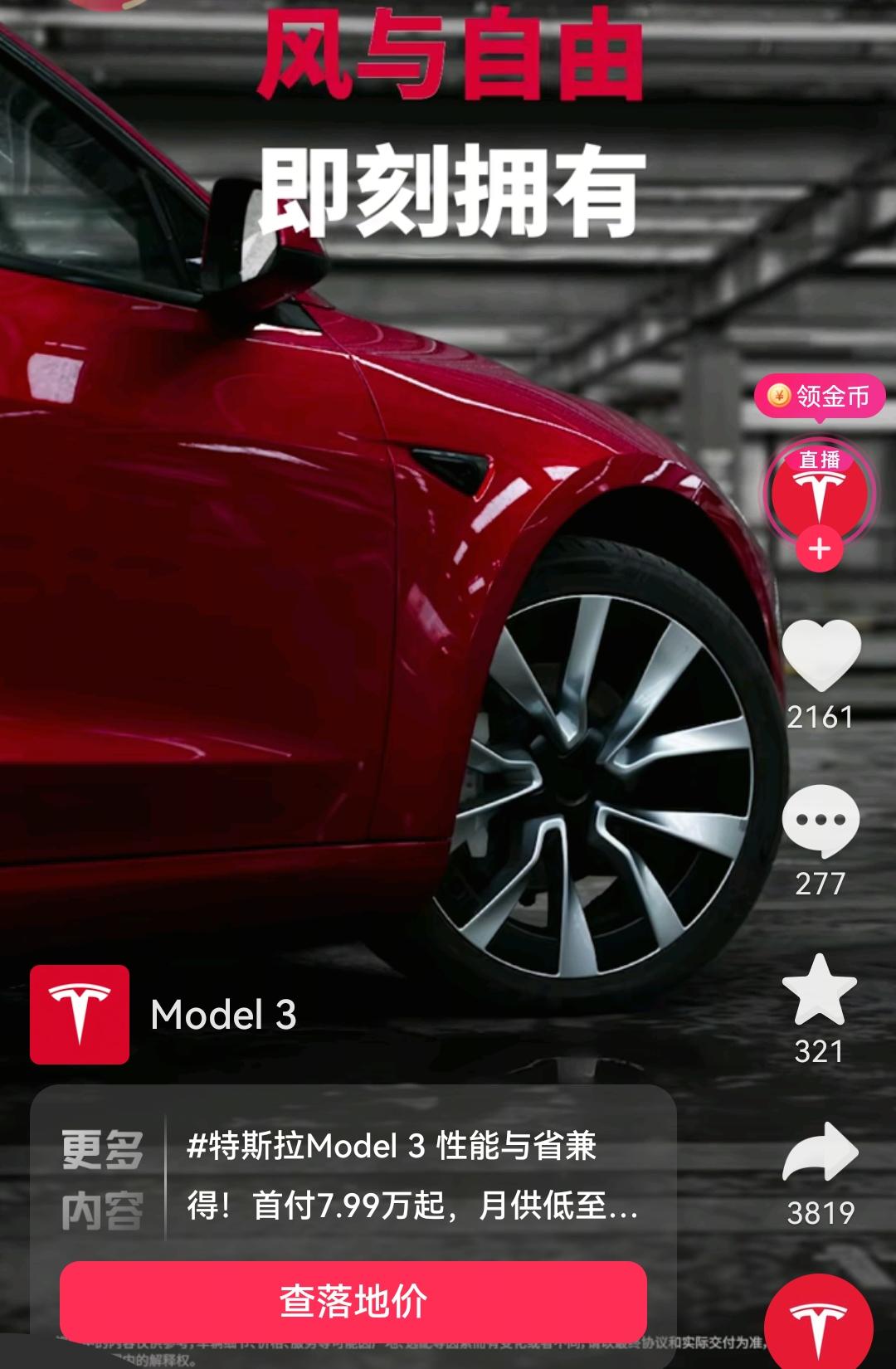 特斯拉汽车也开始大规模打广告了! 此前特斯拉几乎不投放广告,现在也开始投放广告了,这说明特斯拉在应对国产新能源汽车竞争的时候,没有办法像之前一样非常简单的获取到客户。 特斯拉的广告投放还是非常简单的,直接是官方账号推出来的弹窗,最明显的一点就是5年免息放到了最显眼的地方。 各位是怎么看的?欢迎评论区留言。