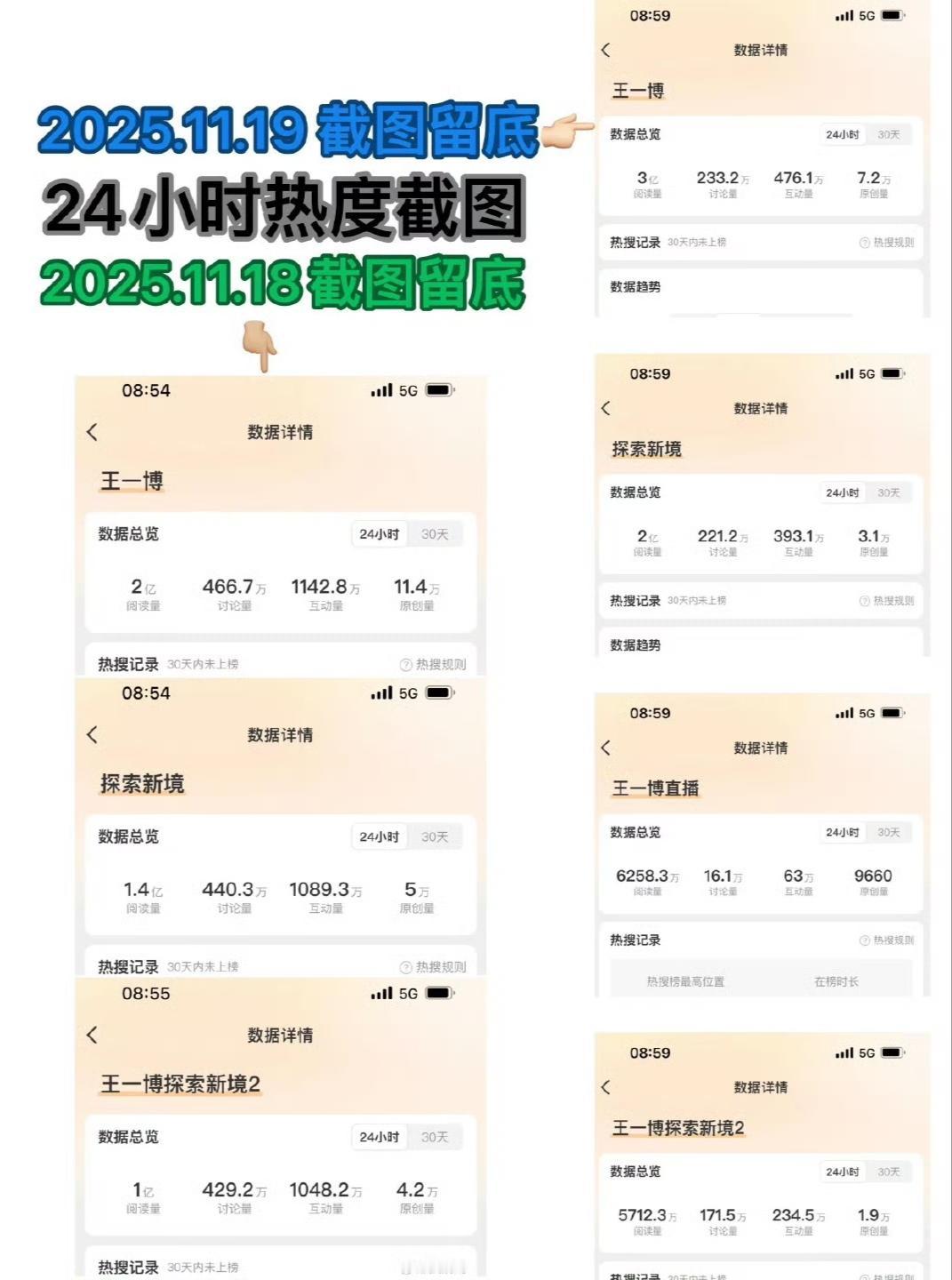 王一博,真实的顶级星光的影响力和国民度,个人ip户外探索纪实纪录片《探索新境2》定档+首映会,48h曝光16.2亿!!! 首映会,工作日下午15点20开始,双平台观看人数836万人!工作日…… 这份数据寓意着,对王一博的“关注”,早已超脱出所谓的“粉丝”范畴,王一博的影响力已经是真正意义上的国民向和大众化。 王一博