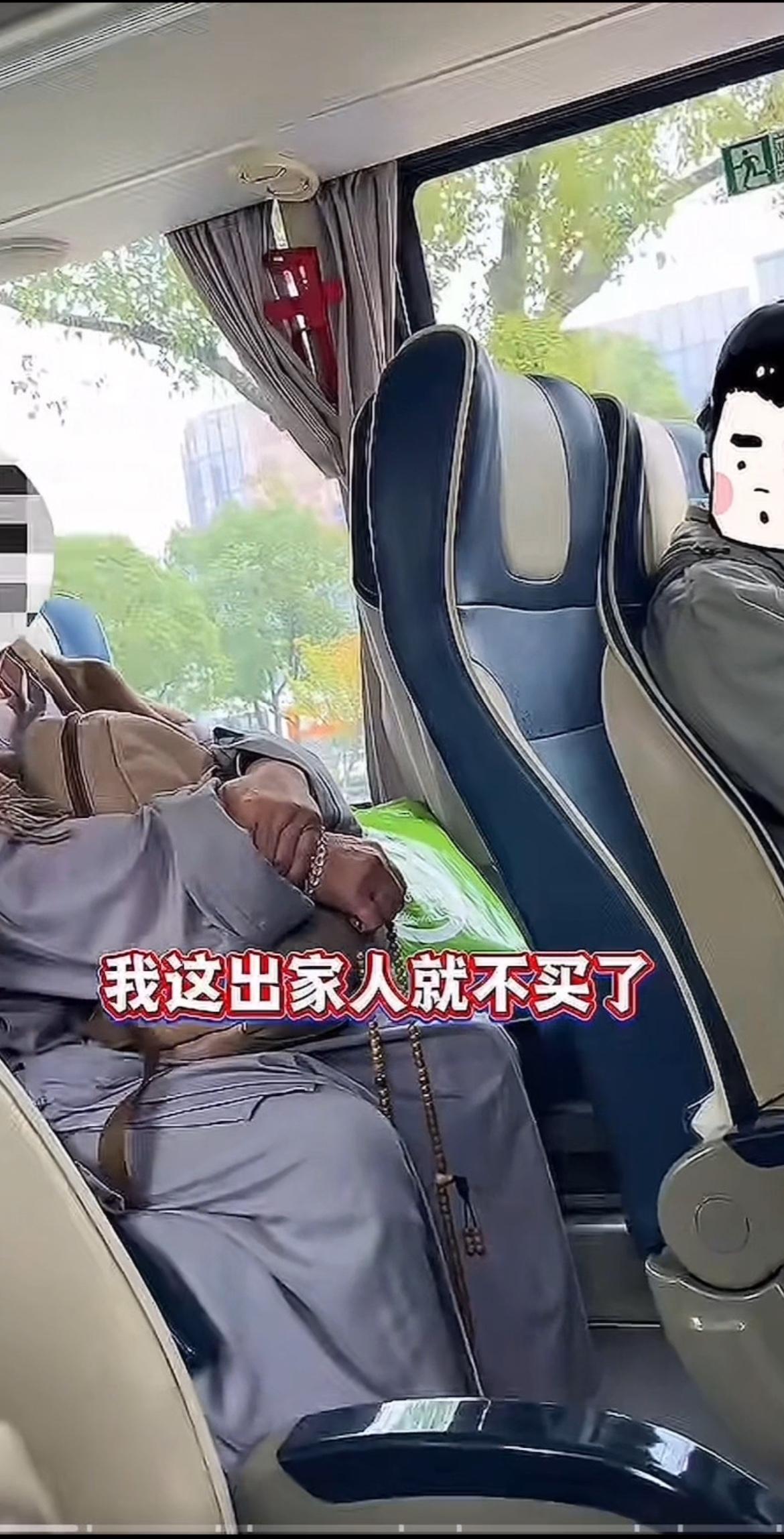 出家人就有特权不用买车票吗? 一旅游博主在11月7日在一旅游专线车上拍下一个老尼姑坐霸王车。 事情经过是这样的。这旅游专线车从市区出发到景区,其中一个尼姑打扮的老年人上车。她没有买车票,拿出老人卡出来刷。但这辆车并不能65岁老年人免费刷卡坐。司机劝她购买车票。 她直接跟司机说:“去极乐世界拿吧,65岁坐从市区内的车就免费,你爱到那告去那告,我是出家人你跟我要钱?” 司机:“这个车是索道专线旅游专线,并不是免费车,叫乘客买票是我的职责。” 车上其他乘客也纷纷指责其不对。其中坐她前排一男子说她这法学歪了。她指着前排男子“你买是你买,我跟你去论一论,谁是歪谁是正。我这出家人就不买了。” 看完我真的怀疑她是真出家人还是假出家人?司机要求买票合情合理,她却甩出“出家人不用给钱”的奇葩论调,甚至放话“去极乐世界拿”。修行从不是耍无赖的借口,遵守公共规则才是做人的底线。你觉得这种拿身份当挡箭牌的行为,配得上出家人的称谓吗?