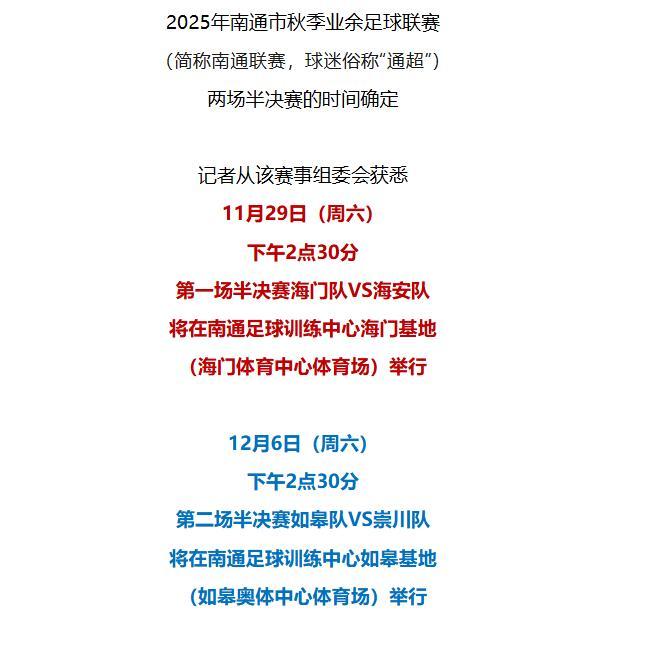 今年苏超虽然结束了,但南通自己的“通超”还在延续球迷的热情。接下来的三个礼拜的周末,南通球迷还有三场“水平不输苏超淘汰赛”的比赛可看,值得一提的是,比赛场地分别是海门体育中心(海门珂缔缘主场,可容纳21500人)、如皋奥体(南通支云主场,可容纳26000人),决赛大概率在南鸟巢,可容纳32000人。如果是海门和如皋进决赛,那激烈程度真的不输苏超决赛了。