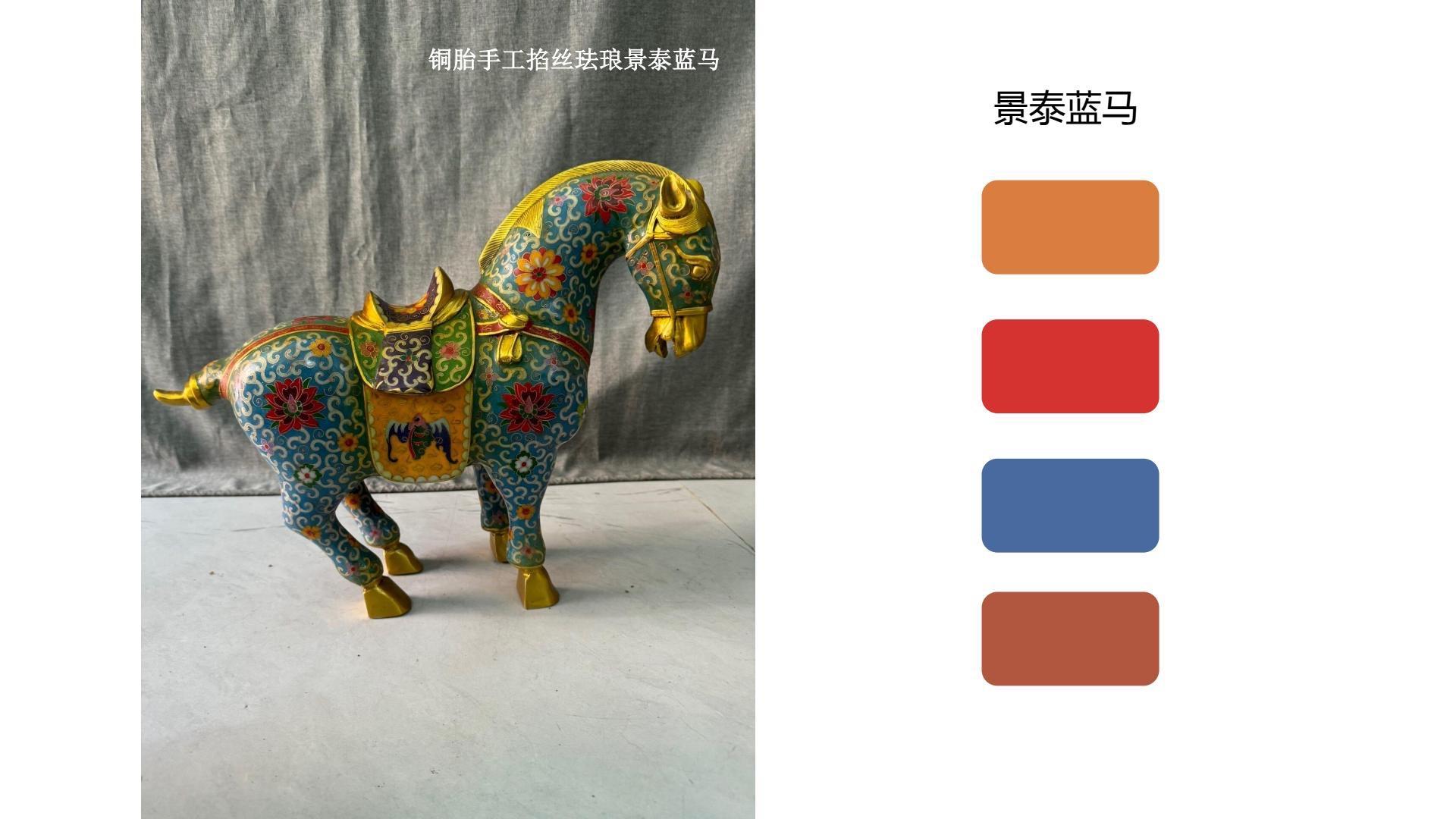 灵感来源于国家级文物配色还原: 【马踏飞燕】 【唐三彩黑釉马】 【花丝烧蓝马】 【错金啸天马】 【青铜马】 【景泰蓝马】
