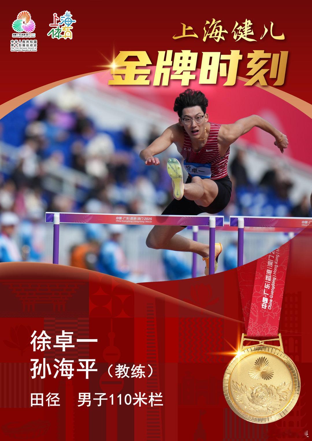 孙海平指导教出来的水平就是高啊,上海田径队的110米栏在国内常年保持优势,从亚洲栏王陈雁浩,到奥运冠军、世界纪录创造者刘翔,再到亚运冠军谢文骏,成材率高,积淀深厚。此次徐卓一的夺冠,也成就了上海队在该项目全运舞台上的九连冠!
