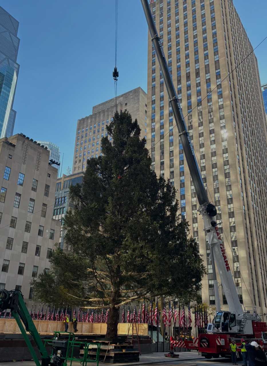 【来自投稿】1949年11月16日纽约洛克菲勒中心 圣诞树安装中 一年一度的纽约洛克菲勒中心的圣诞树亮灯仪式,已经有83年的历史 2025年11月8日 纽约洛克菲勒 中心 圣诞树安装中