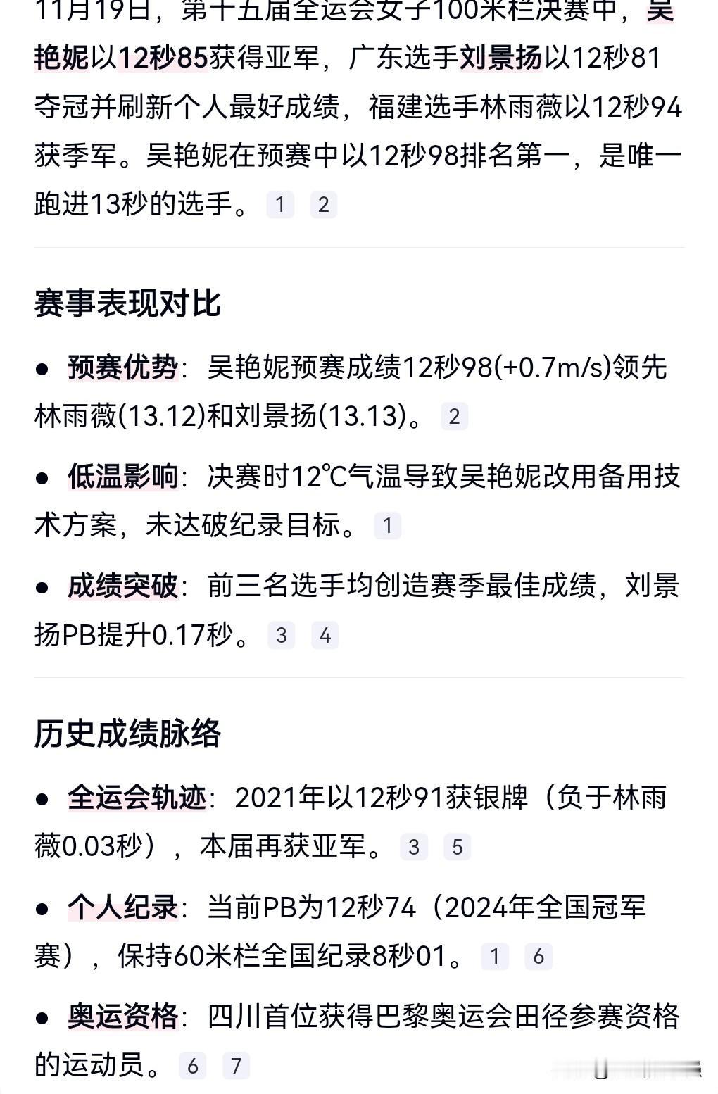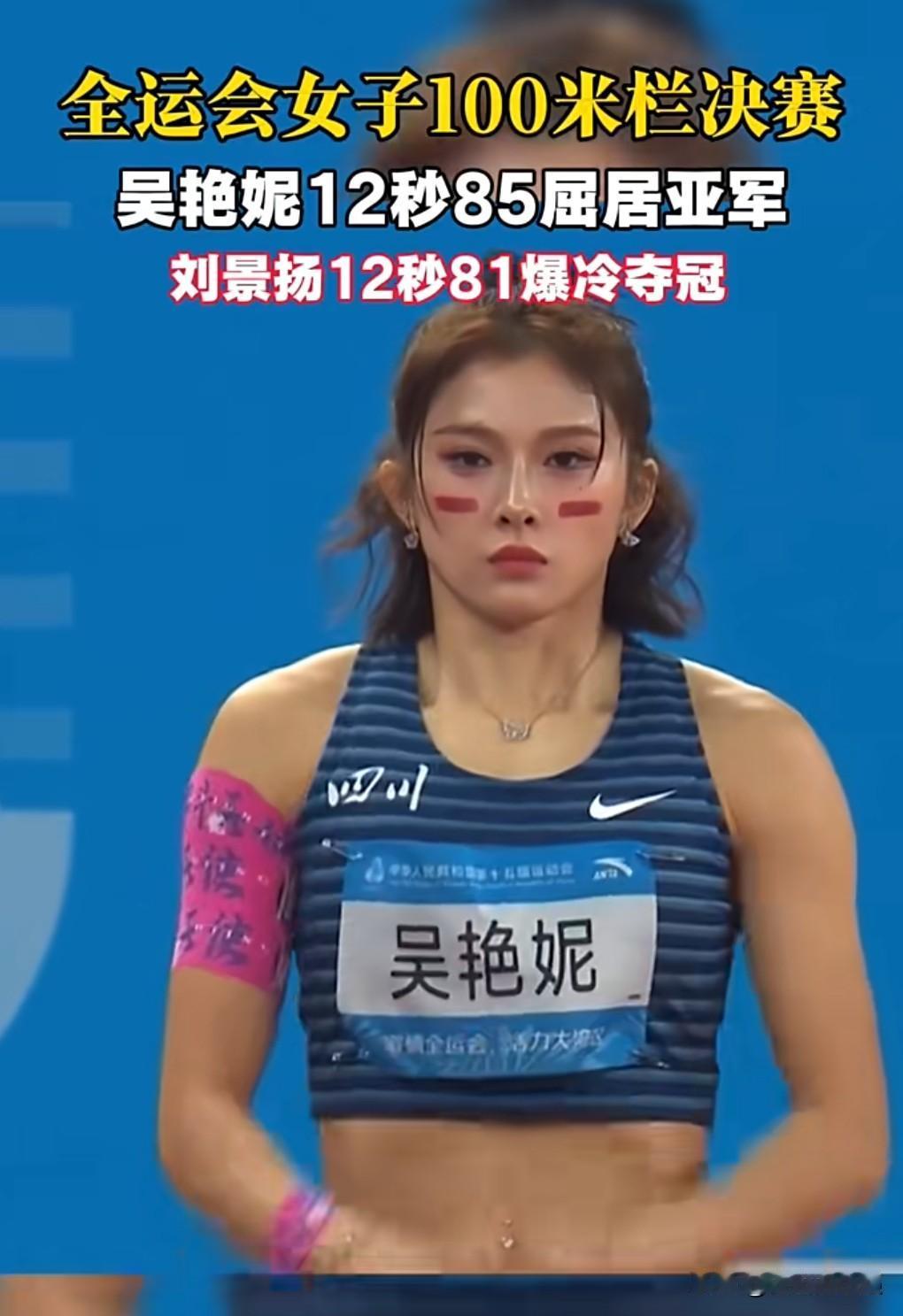 这次全运会吴艳妮是100米栏的亚军。 这挺让我意外的,我以为她这次会拿个冠军。 想不到出来一个刘景扬。 吴艳妮的压力来了。 毕竟又出现了一个国内强者。 竞争就是这么的激烈和残酷。 希望我们的运动员在这个项目上能早日再拿一块奥运金牌。