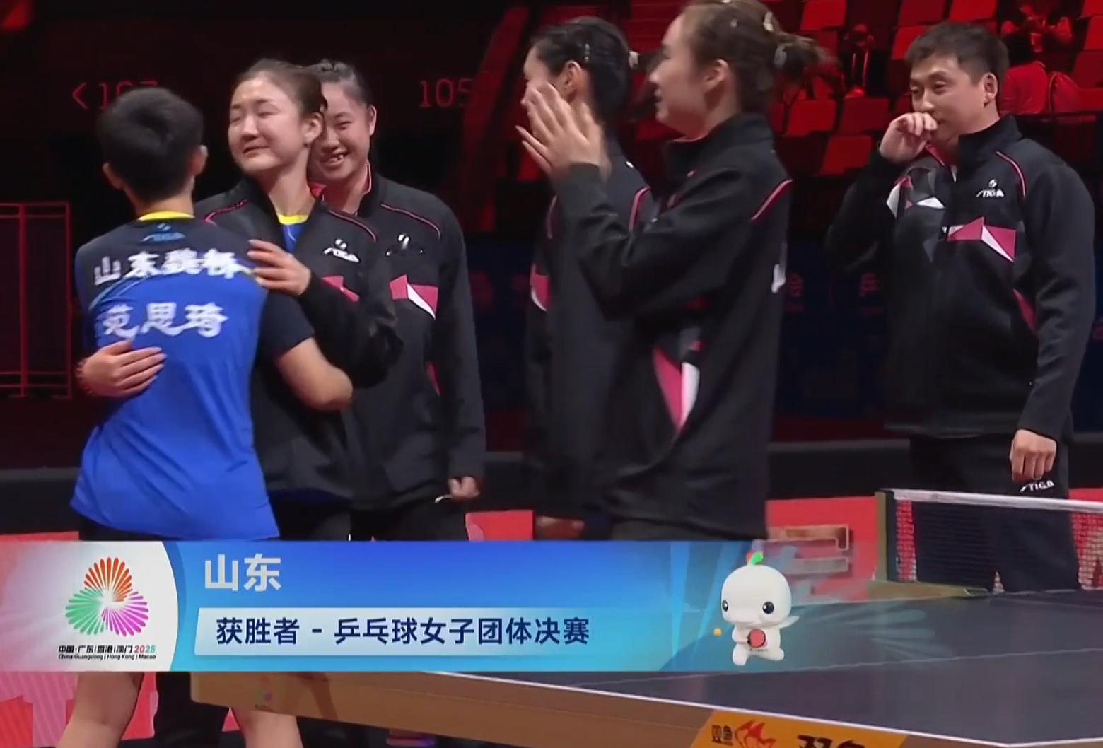 山东女团决胜盘来了一个让二追三,实现超级逆转,夺得全运会乒乓球女团金牌,恭喜陈梦