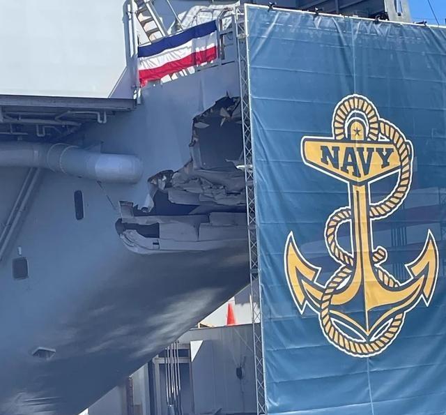 美国的战损修复能力太强了,在杜鲁门号与货船相撞八个月后。被撞部位虽然没有被修复,但是却刷上了新油漆,并且用一副巨幅海报遮挡,看不见就等于没损伤。 美国海军的航母维护体系一向以高效著称,尤其是像杜鲁门号这样的尼米兹级舰艇,设计上就考虑了在部署中快速应对损伤。2025年2月12日晚上,杜鲁门号在埃及塞得港附近的海域,与一艘巴拿马籍散货船贝西克塔斯-M号发生侧面刮擦。 这艘货船长188米,满载货物,在拥挤航道上航行时未能及时避让,导致杜鲁门号右舷后部受损。具体来说,碰撞点在三号电梯后方,船体外壳出现裂口,观察平台变形,但没有影响到核心作战系统。 海军迅速评估,确认无人员伤亡,也没有燃料泄漏风险。杜鲁门号随后驶往希腊苏达湾基地,进行初步检查和临时补救措施,比如焊接临时补丁和清理碎片,但没有立即进入全面修理阶段,因为航母需要维持在地中海的巡航部署。 杜鲁门号的损伤处理过程,反映了美国海军的资源分配策略。碰撞后,工程师团队使用扫描设备对船体进行详细检测,确认结构完整性没有重大隐患。 水下部分通过潜水员检查,确保无渗水问题。海军决定将完整修复推迟到计划中的大修周期,这通常包括燃料补充和复杂维护,预计在2026年进行。 在此之前,舰艇继续参与各种活动,包括联合演习和周年纪念。八个月后,到2025年10月,损伤部位依然存在,钢板扭曲未变,但海军采取了外观美化措施。 具体是喷涂一层雾灰色油漆,覆盖锈迹和裂缝,然后挂上一幅巨型海报,印有海军标志和口号,完全挡住受损区。从外部看,船体恢复了统一外观,这在纪念活动时避免了负面视觉影响。 类似做法在历史上也有先例,比如其他舰艇在部署中用临时覆盖维持形象。贝西克塔斯-M号货船也很快修复了船首损伤,继续其商业航运,没有引发更大纠纷。这次事件让外界看到,美国海军在预算和时间压力下,如何平衡维修与任务执行。