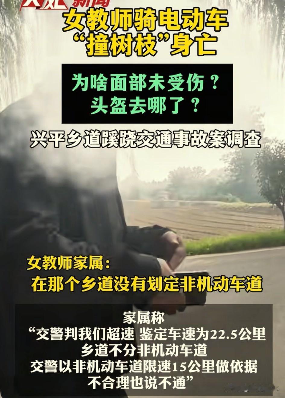 女教师骑电动自行车超过15公里/小时,与树相撞死亡被判超速负主责! 据大