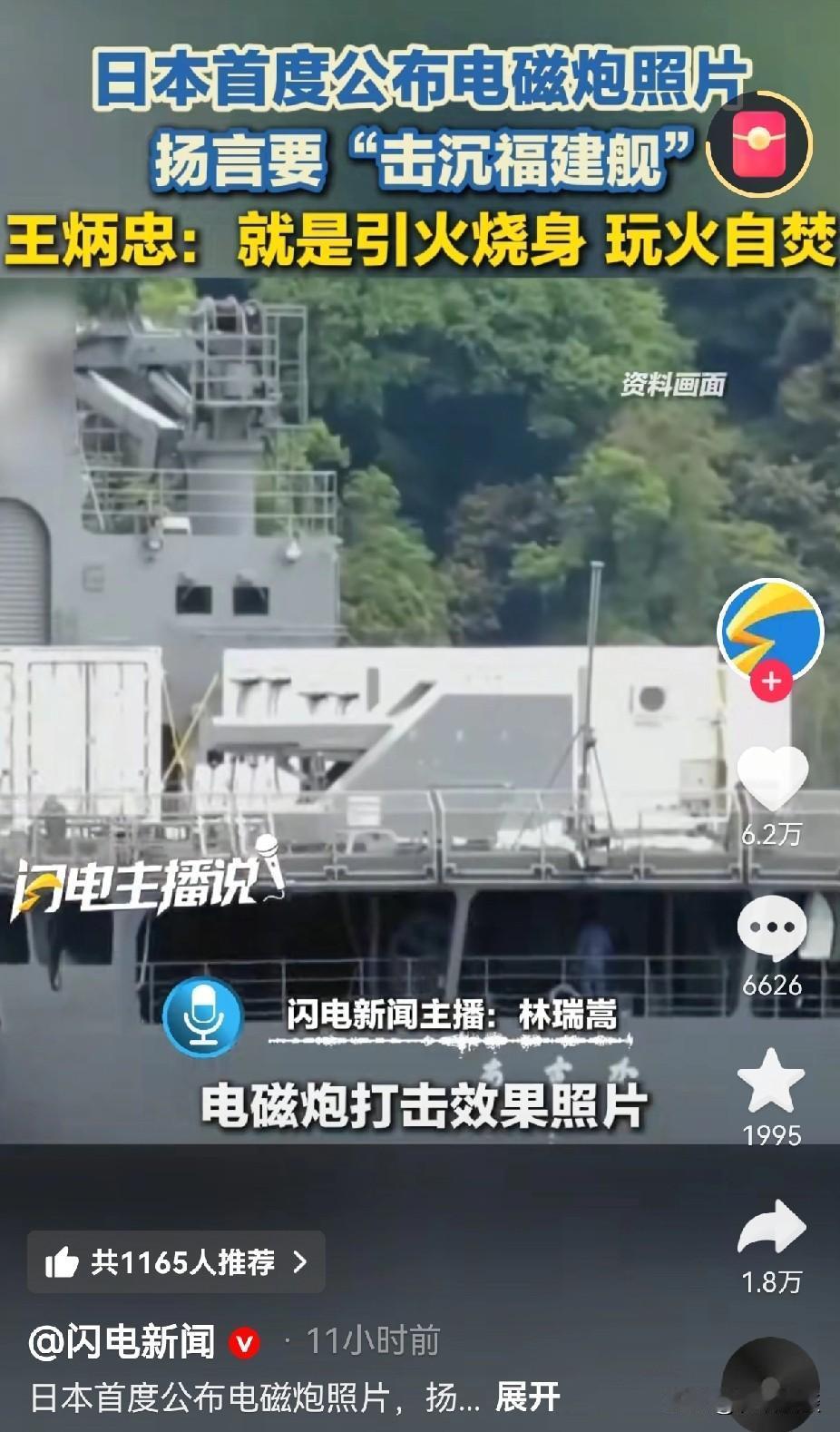 简直笑不活了。 高市早苗又开始给自己加戏了。 眼看 G20峰会见不成面, 自家局长又在我们面前当了回犯错的小学生。 为了挣回面子,又开始给自己刨坑了。端出了个破电磁炮 ,对准我们福建舰,还扬言要配合美国击沉我们。 小日本这是夜路走多了,给自己壮胆呢。 中国有核弹头600枚, 你自己有多少,心里没数吗,负2枚。 实力撑不起野心,省省吧! 更可笑的,日本卖力表演对华强硬时, 靠山”美国却悄悄撤走了部署在驻日美军岩国基地的“堤丰”中程导弹系统。 塑料姐妹花呀! 奉劝一句, 别整天狐假虎威, 引火者烧身,玩火者自焚!