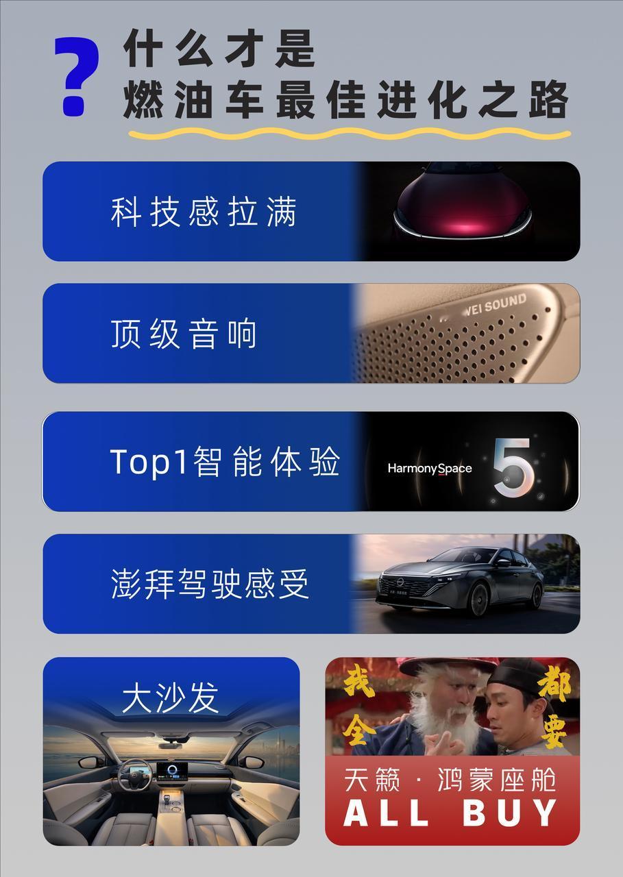 天籁与华为合作的鸿蒙座舱,油车+智能化的组合关注度好高啊,说明油车的市场还是巨大,但智能化也是刚需。我还没见到实车,找了些别的媒体拍的 感受一下。整体还是挺“新势力”感觉的,要是改为怀档就更对味了有人说这次合作是把B级油车的智能水平一下子拔高到了行业T0水准,这把是真的智能平权了!选油还是电,这下有了更大的选择空间