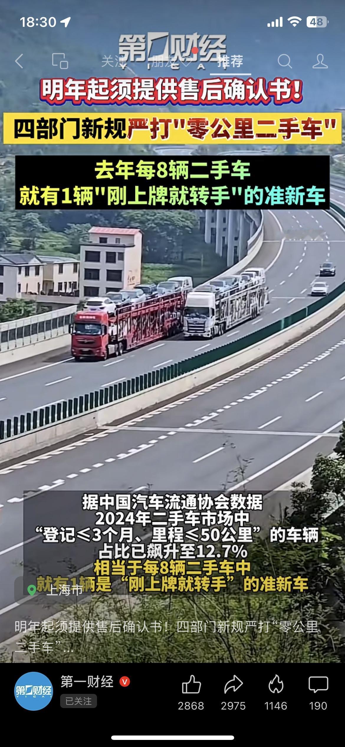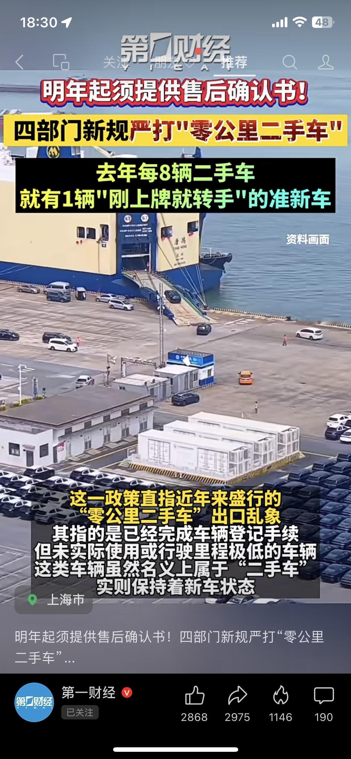 明年买“准新车”要小心!四部门堵死漏洞,没这东西根本卖不了 去年二手车市场邪门了——每8辆里就有1辆是“刚上牌就转手”的准新车!现在商务部、工信部等四部门直接下狠手:2026年1月起,卖这种车必须给售后确认书,拿不出来连出口许可都不给。 以后再碰“零公里二手车”,可得盯着商家要手续,别被坑了! 二手车新规