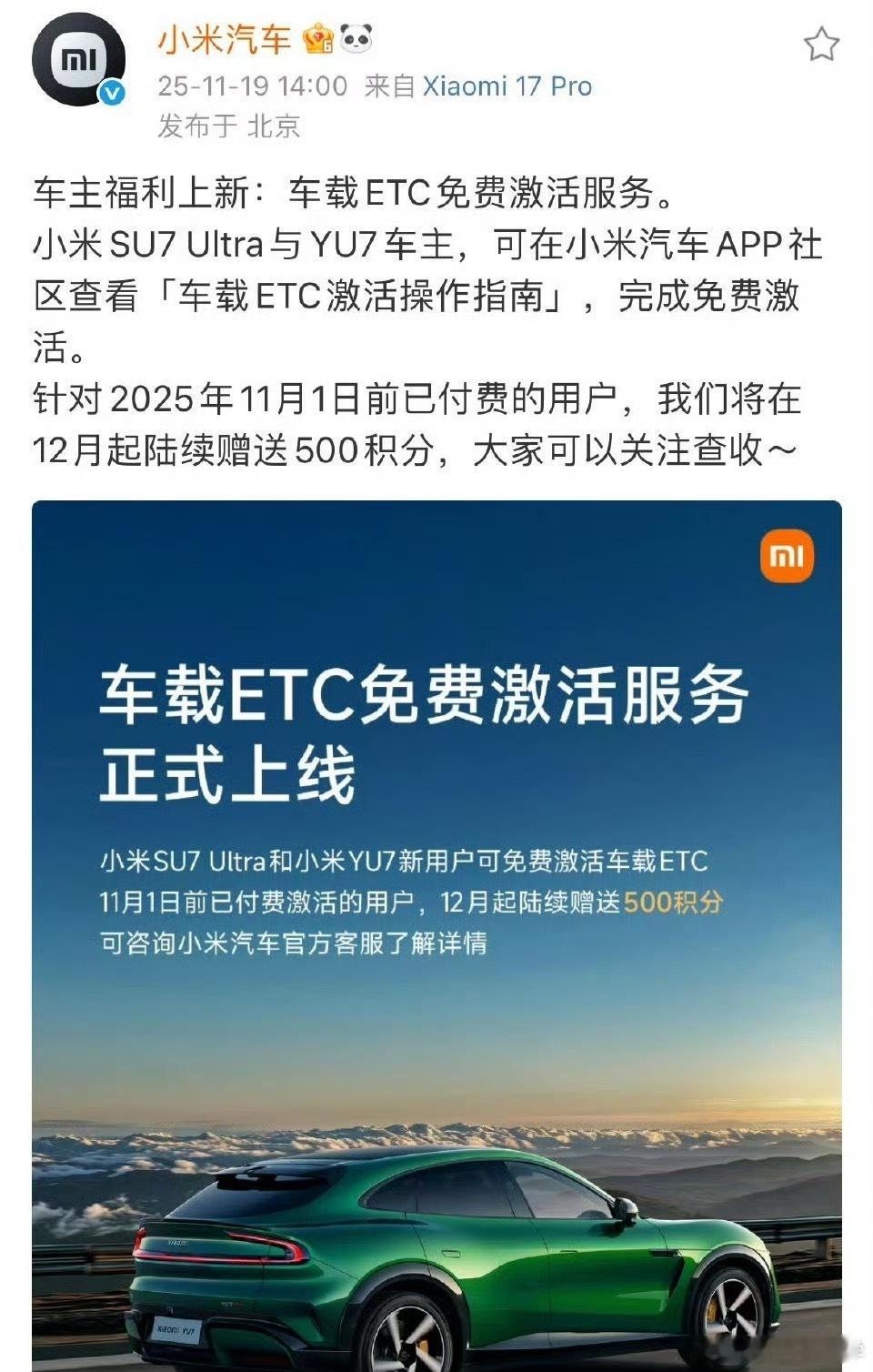 小米的车载ETC,这个设计是真用户的心理,建议在国内销售的汽车都用上这个功能!