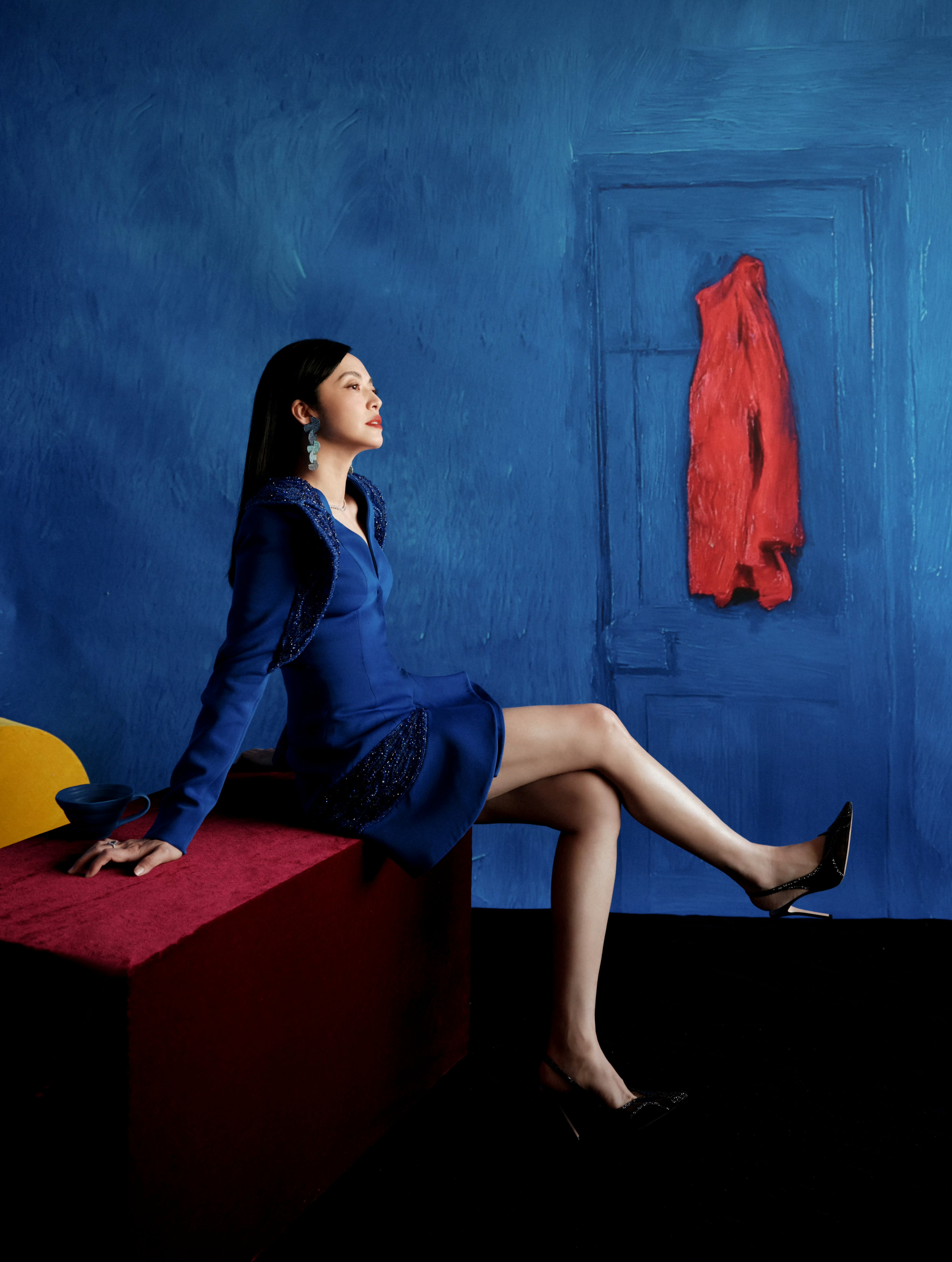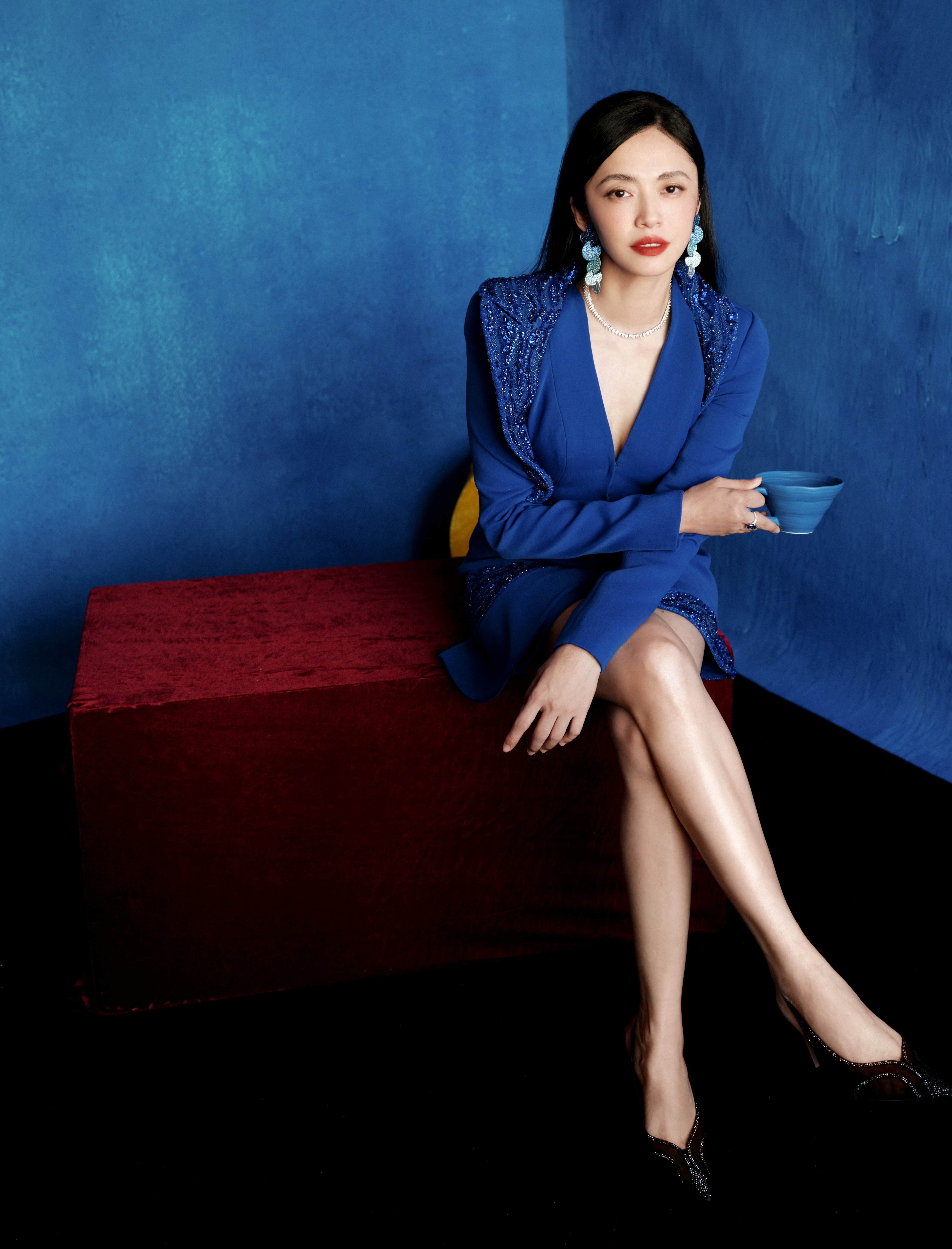 章子怡蒂芙尼活动,黑色尖头👠很性感,穿搭足够吸引人