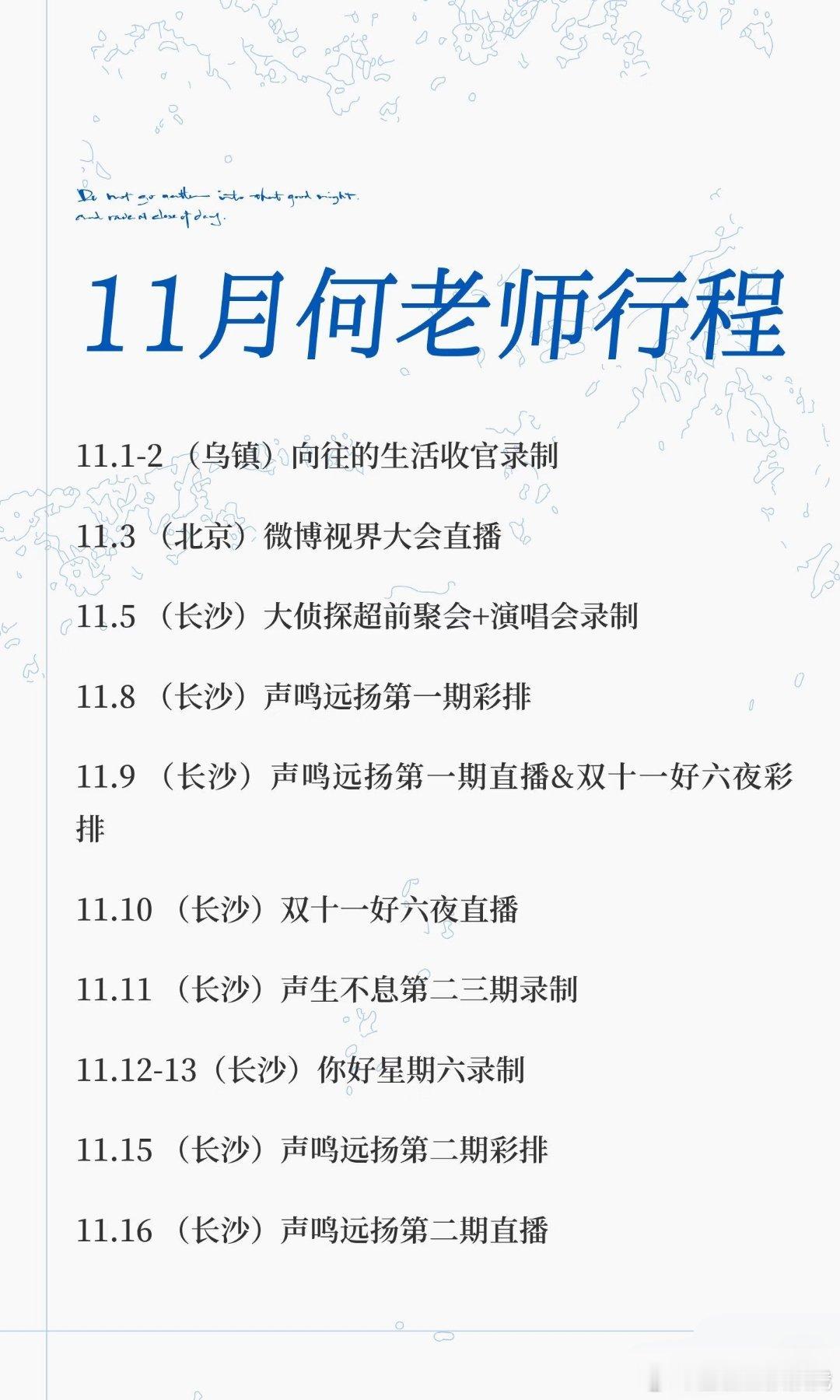 何老师的11月行程比很多当红的流量还忙谁敢信
