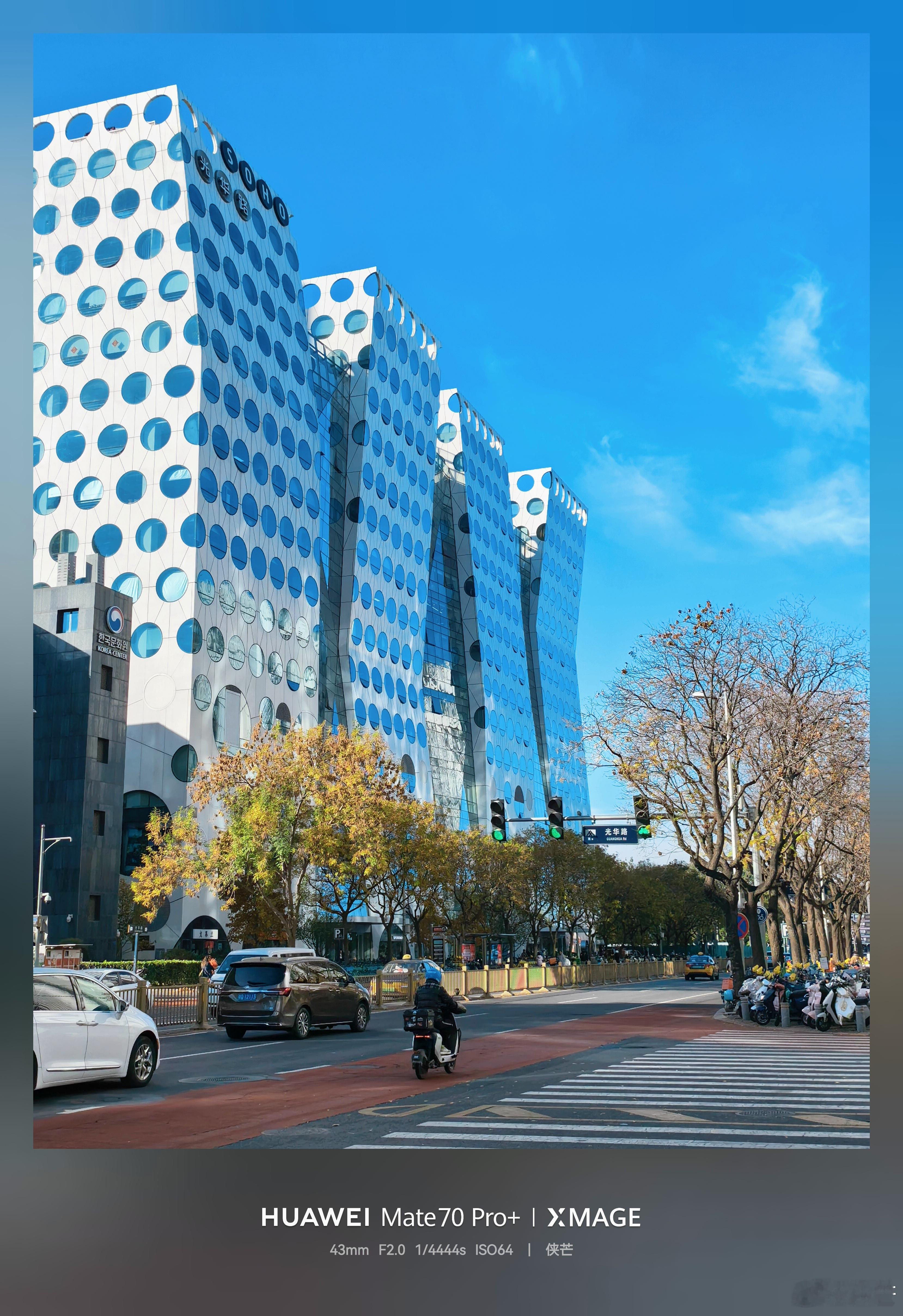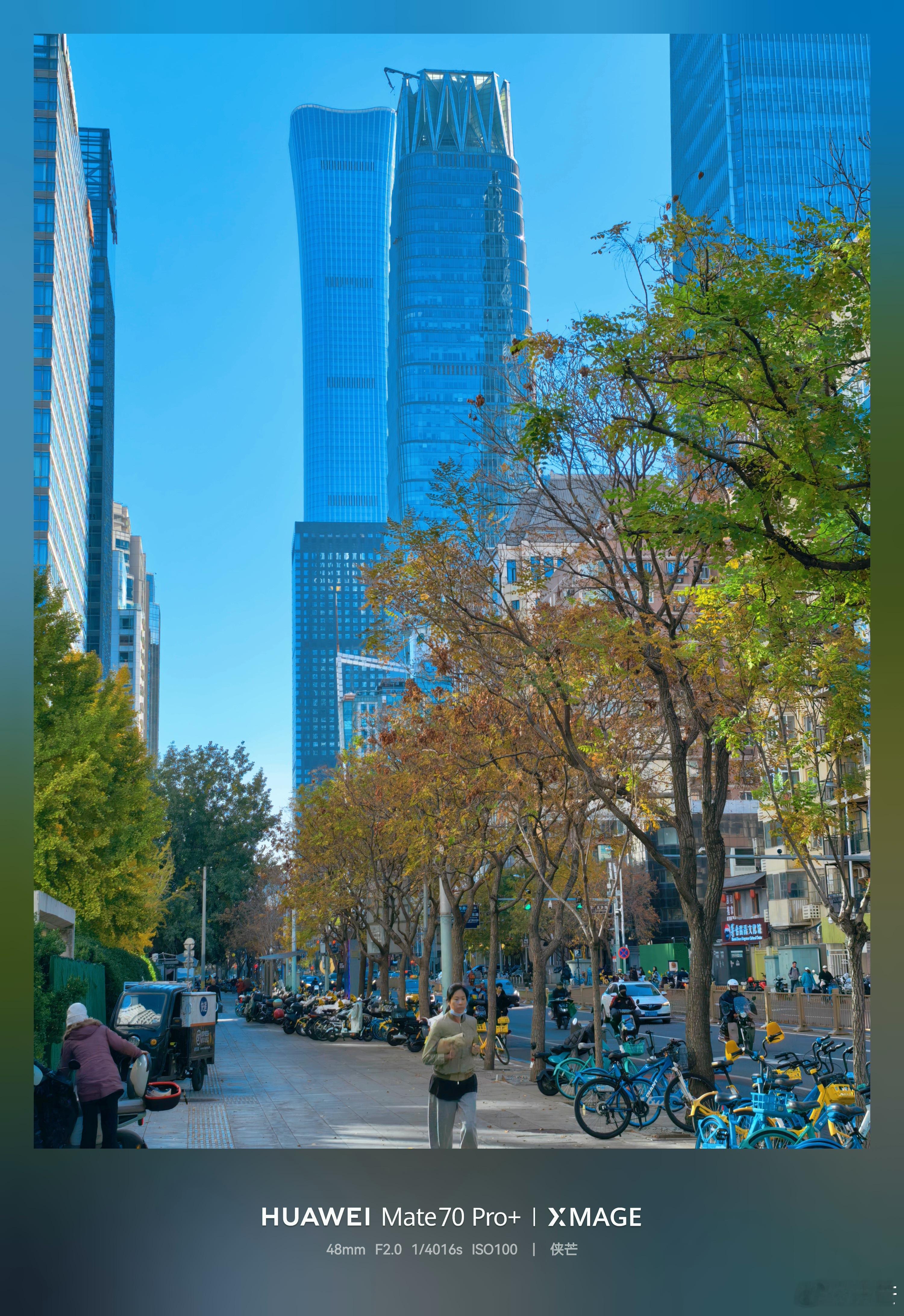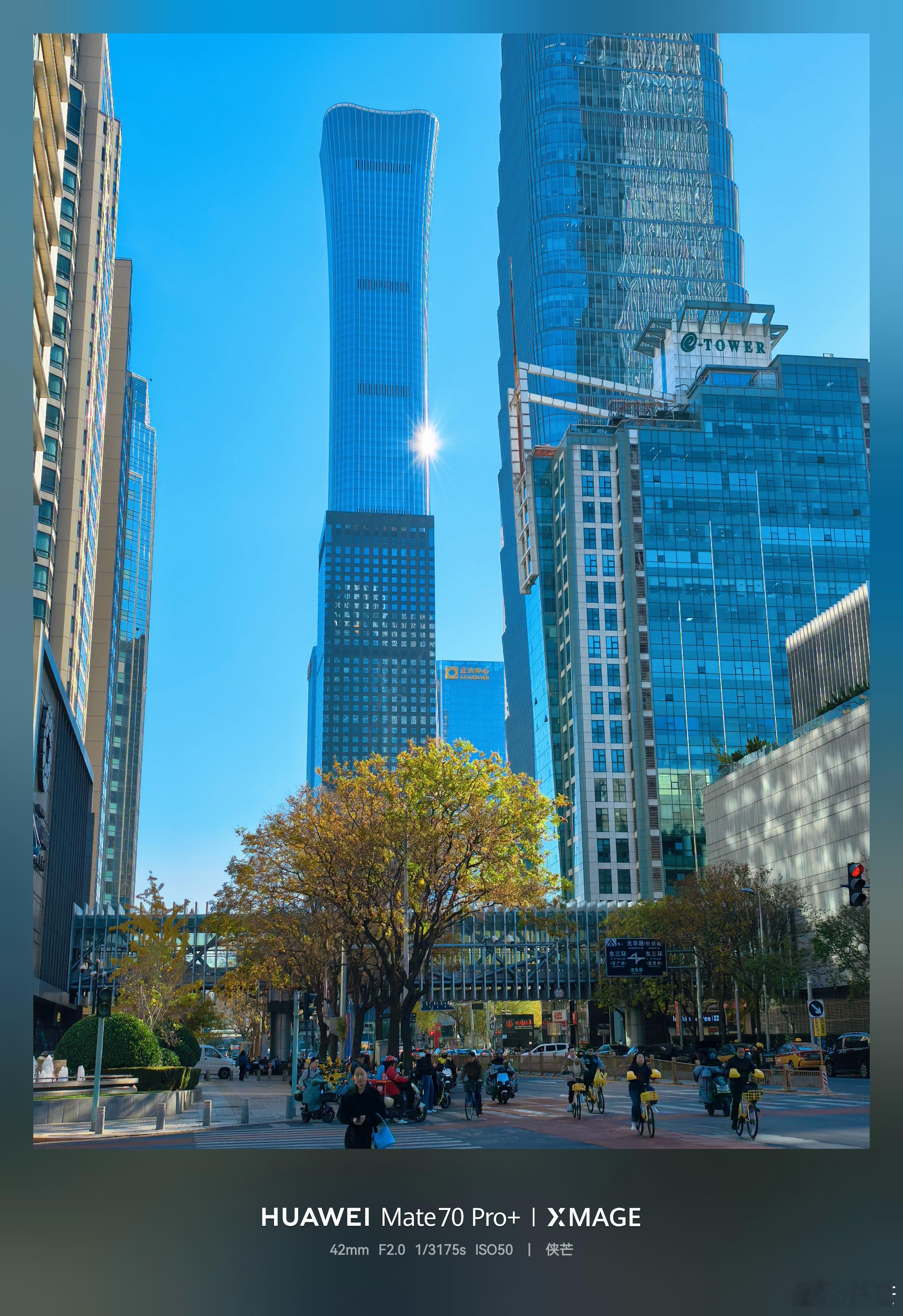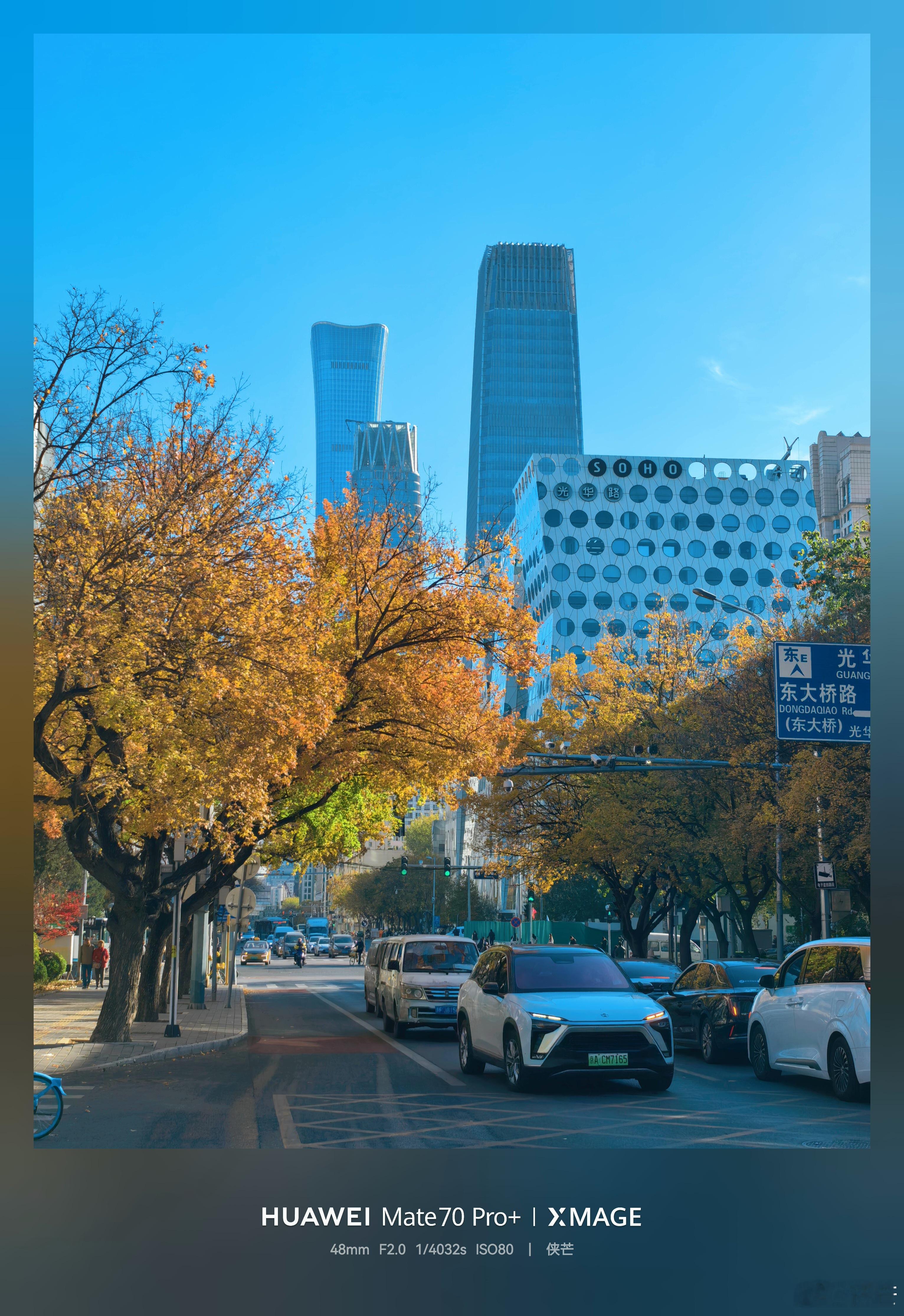 行走京城,光华路秋色 初冬暖阳洒落,沿金桐路漫步光华路,两旁银杏金黄,元宝枫叶由红转橙。层林倒映在摩天大厦的玻璃幕墙上,光影交错,繁华街市仿佛披上诗意锦衣。落叶轻舞,步履生温,城市喧嚣在此刻化作一抹静谧暖意,令人驻足流连。 摄影