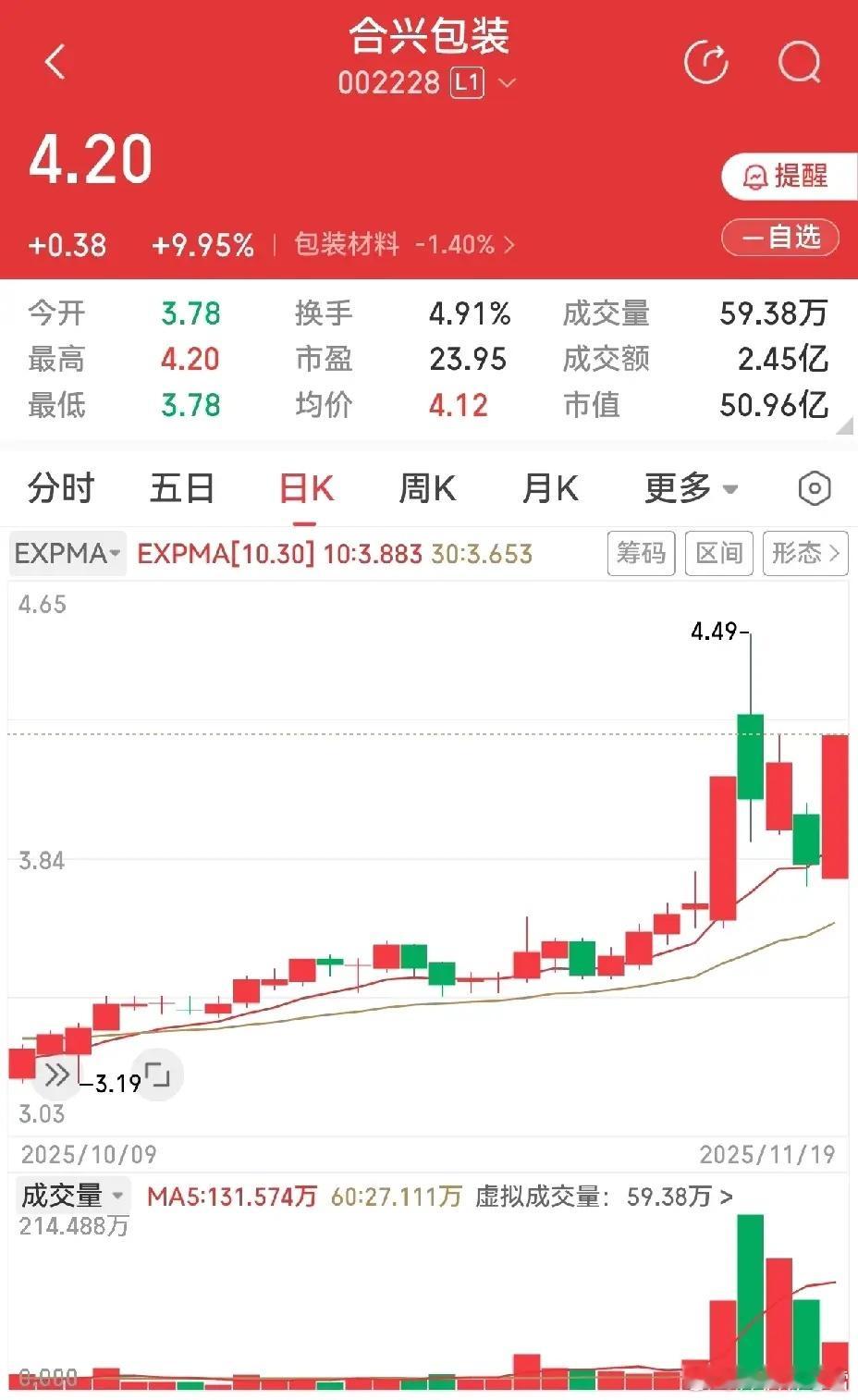合兴包装(一板带小下影线)、九阳股份(二板光头阴线)的潜在洗盘标的,也仅建议轻仓