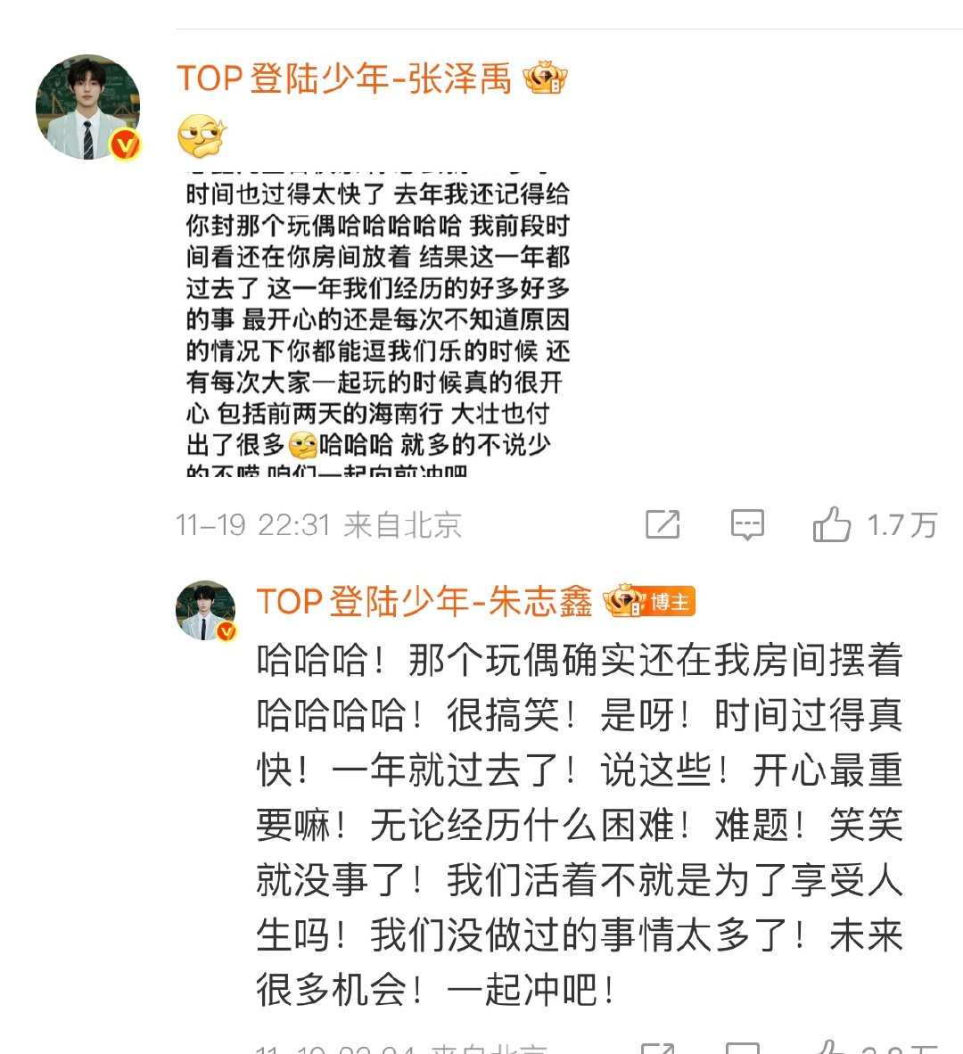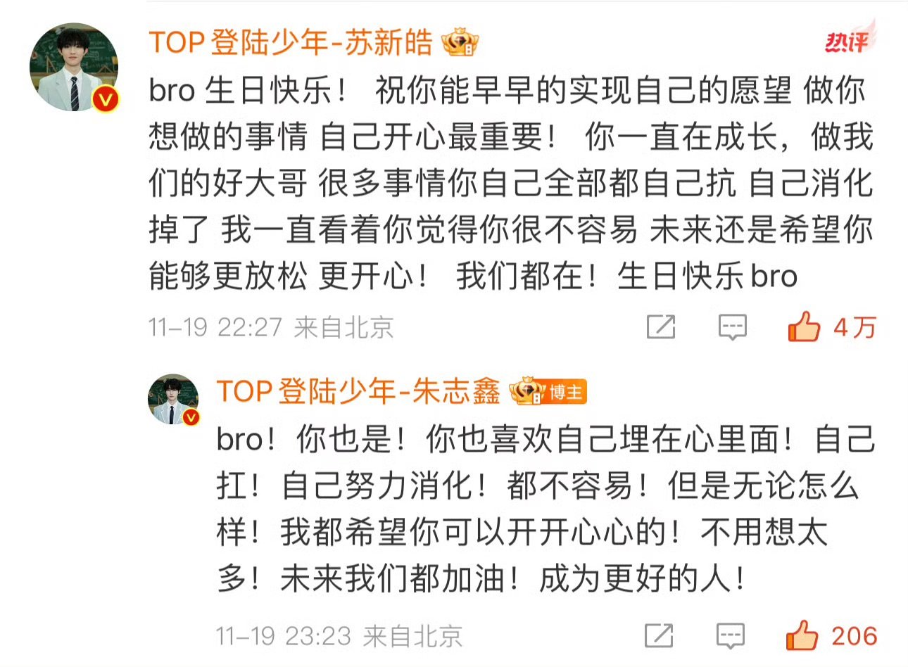 登陆少年暖心为朱志鑫庆生,少年们并肩同行,这份专属友谊,热烈又绵长!