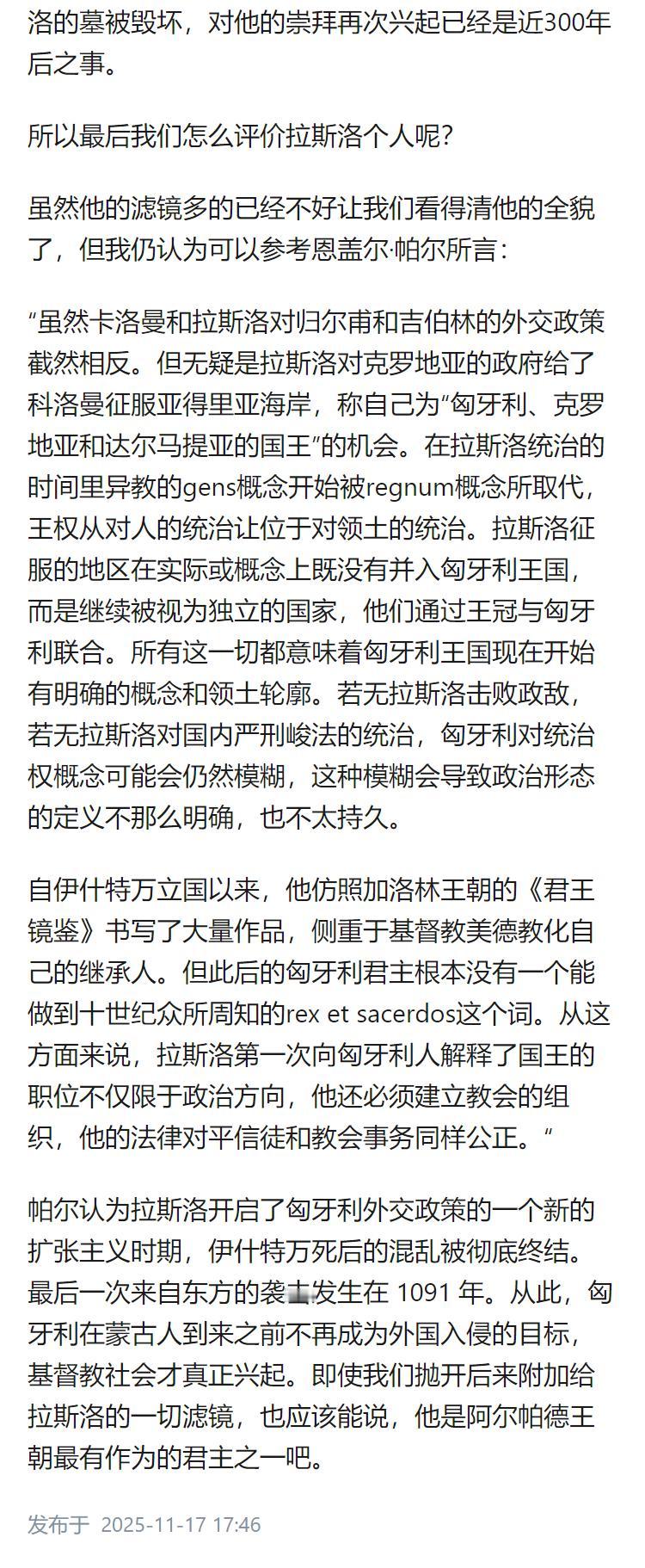 如何评价匈牙利国王(圣)拉斯洛一世?