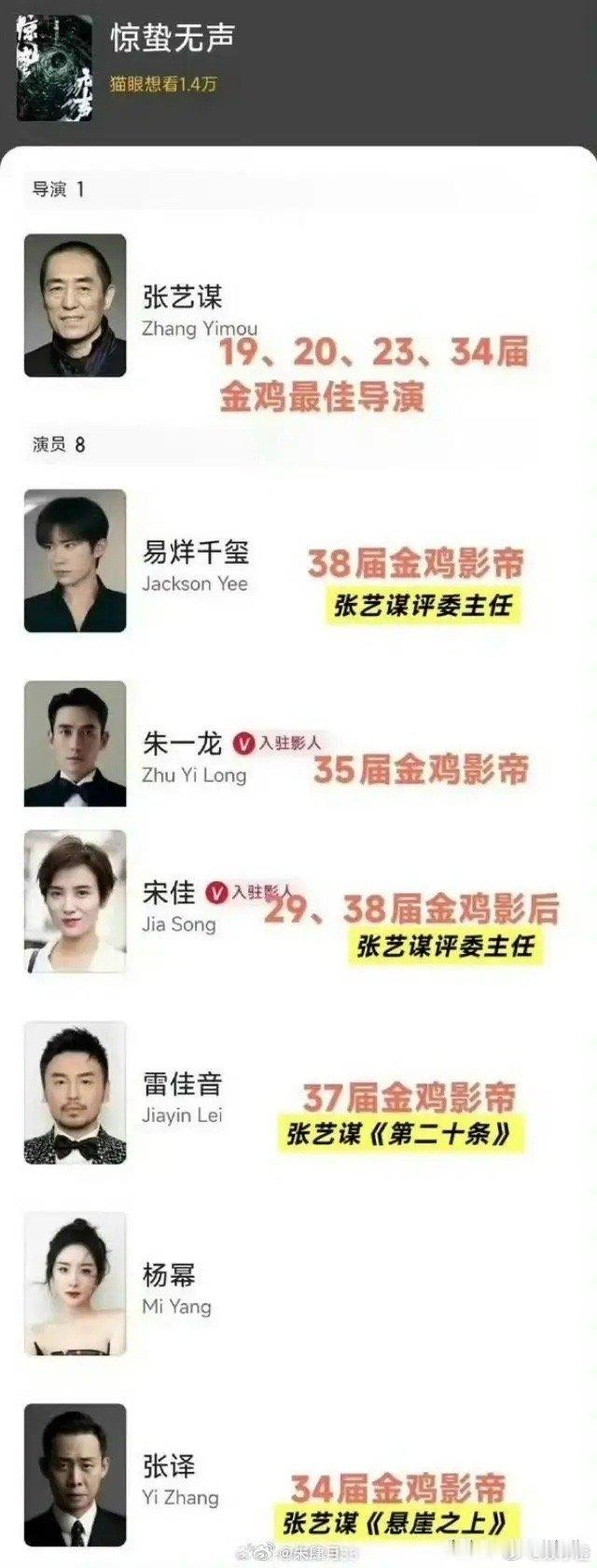张艺谋的新片《惊蛰无声》最近可被推到舆论的风口浪尖啦!网友们发现个超逗的事儿,说朱一龙这是“误闯天家”了。你瞧瞧这演员表,那可全是影帝影后扎堆儿,而且啊,这些获奖的演员,要么是跟张艺谋合作过好多次,要么就是之前得奖的作品都和张艺谋有关联。这里面就朱一龙是个意外。朱一龙拿了第35届金鸡影帝,还是十五位评委全票通过的呢,注意哦,这和张艺谋可没关系!朱一龙拿影帝靠的是《人生大事》,这部片的导演刘江江是个新人,这还是人家的处女作,整个班底就是小成本、没啥大牌撑场面的“三无”配置。朱一龙能拿影帝,那可真是靠自己实打实的实力拼出来的!