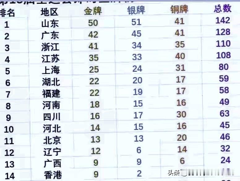 想不到啊,北京代表队竟然排不进前十名。全运会还有两天的时间,最后一天只产生一块金牌,实际上也只有今天来争金夺银啦,北京代表团目前只获得了13枚金牌,跟第一名山东代表团竟然相差了37枚金牌,这差距快赶上北京到济南的距离啦! 虽然说官方没有公布奖牌榜,可是老百姓心里都给你计算着呢,这成绩不只是金牌的事,是拼搏精神的体现啊!北京队有那么好的资源,但是出不了好成绩,有点说不过去啊。就比如天天吃海参的球队却屡战屡败,输的不是训练和技术,输的是拼搏的斗志和精气神。 竞技体育除了天赋和训练外,最重要的就是斗志了,昨天女子乒乓球团体决赛,由孙颖莎坐镇的河北队对战陈梦领衔的山东队。山东队范思琦在最后一场0-2落后的情况下,敢打敢拼,逆风翻盘,最后帮助山东队获得冠军。 值得一提的是,这次河北队里的大美女王添艺其实是山东人,这次代表河北队出战,只能说山东的实力太强了。 (图片来自网络)
