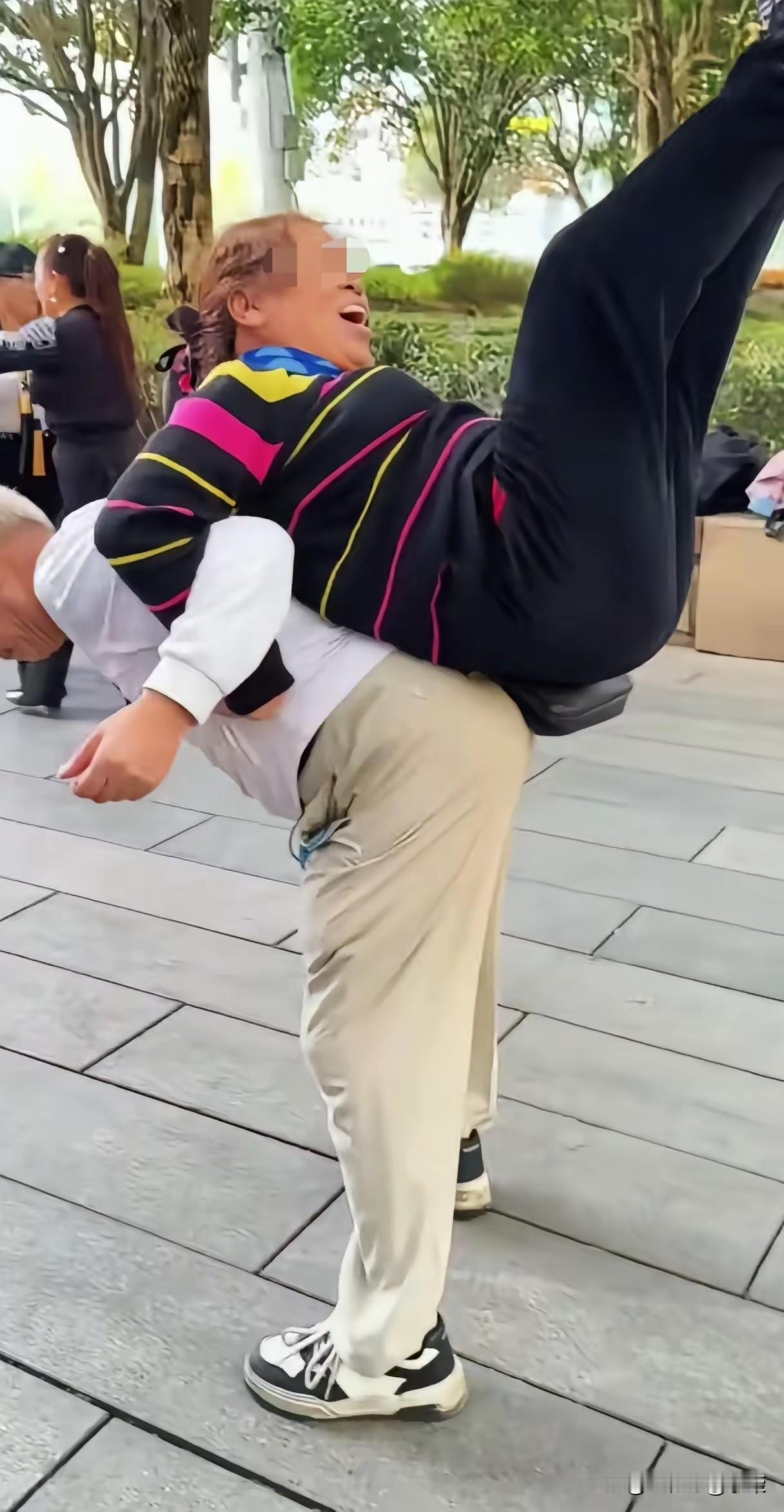 如果说没有图片为证,谁都不会相信,这样的事儿竟然会发生在老人身上。不知道是有钱烧的慌,还是年轻人的思想,又占据了头脑?居然在大庭广众之下,不顾及自己的脸面玩起了绝招。 国家是富裕了,给你们发的钱,真的是多的花不完了。这样的画面,如果与农村七八十岁的老人,还在下田耕作比较起来,不知道谁更打脸?