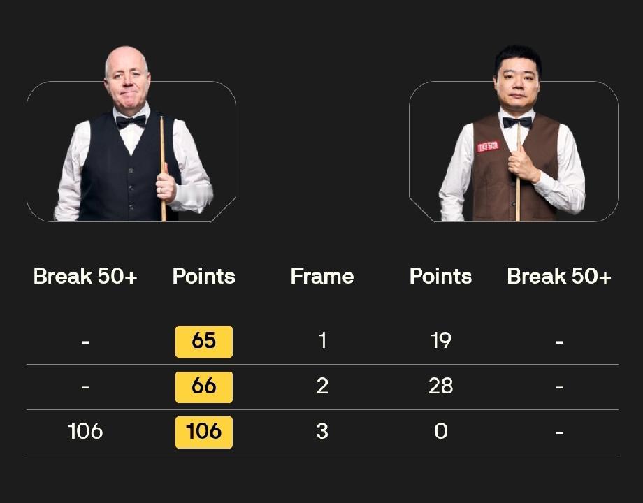 肖恩·墨菲零封罗尼·奥沙利文晋级八强! 11月19日,2025利雅得狂欢季斯诺克锦标赛开杆。第一轮12进10,肖恩·墨菲4-0齐亚德·卡巴尼、丁俊晖 4-0 艾曼·阿拉姆里。第二轮10进8,肖恩·墨菲4-0罗尼·奥沙利文,晋级八强。1/4决赛,肖恩墨菲对阵赵心童。 在第二轮第二场比赛中,约翰·希金斯 3-0 丁俊晖,大概率晋级八强,1/4决赛,对阵卫冕冠军马克·艾伦。