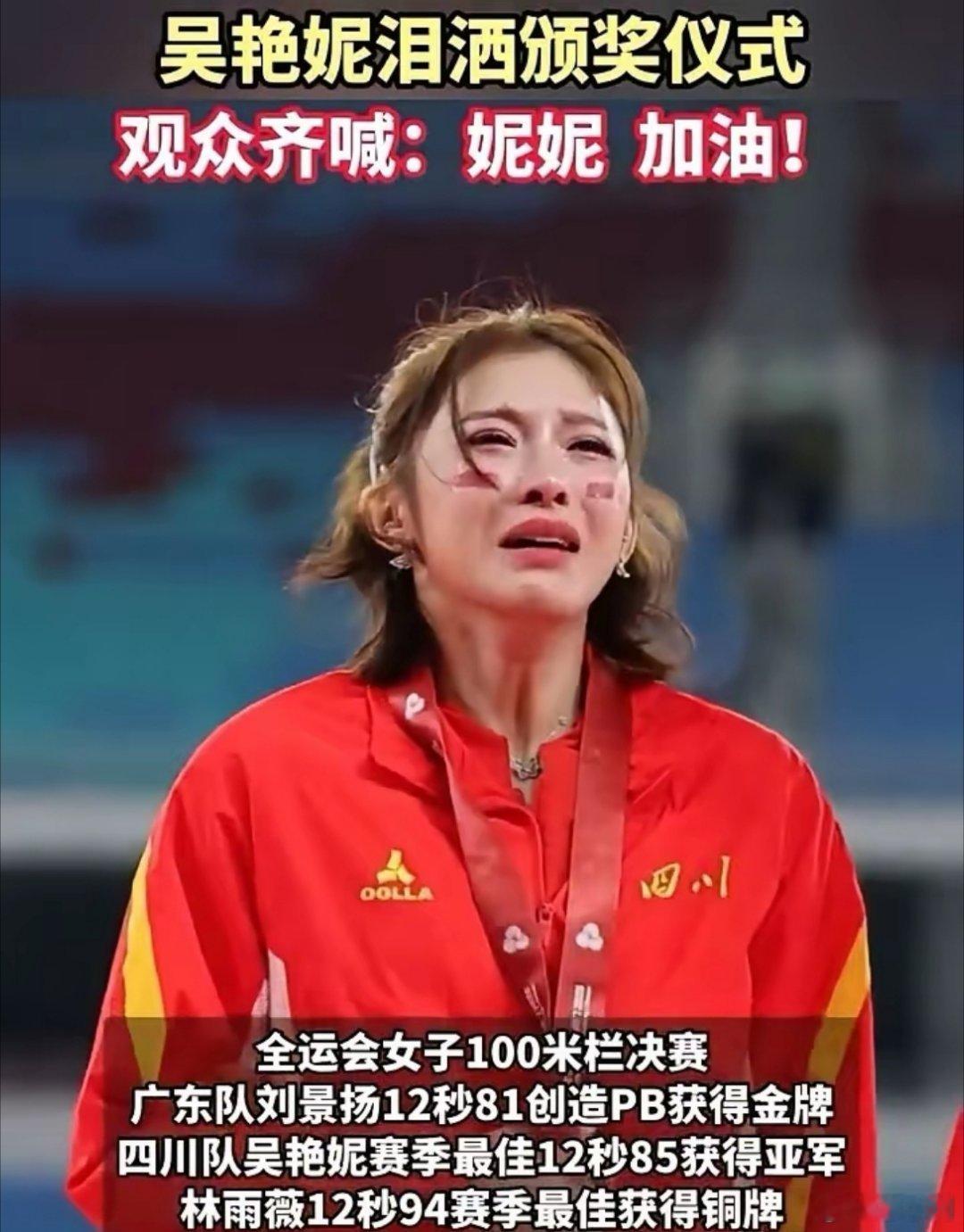 吴艳妮哭了!可以理解,这是她最接近全运冠军一次。她用12秒85的成绩战胜了老队友