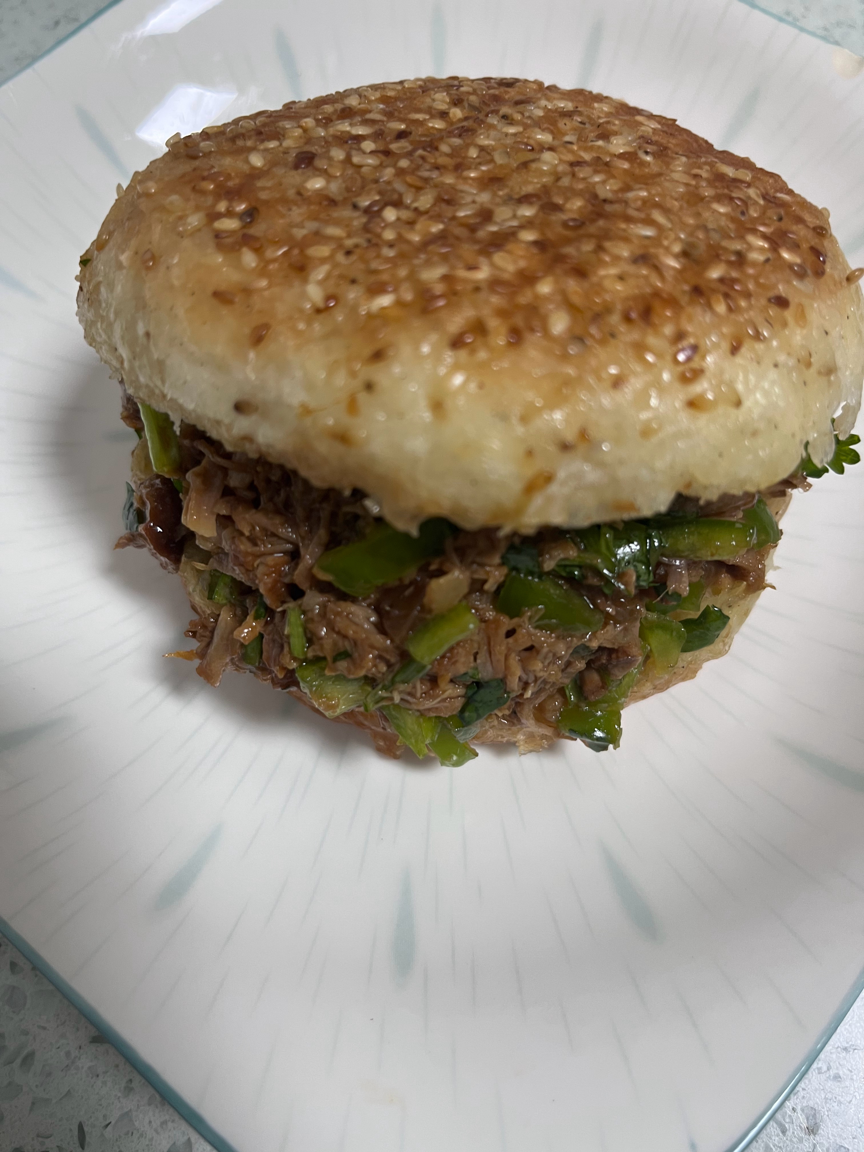 早安啊!新的一天开始了,来一份肉夹馍吧,自己做的料多哈!