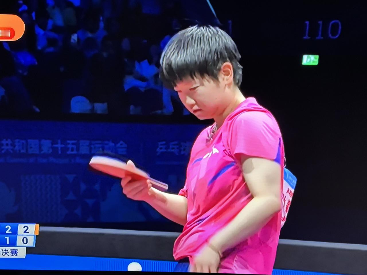 乒乓球女团决赛中,打了五盘,前面四盘,河北队与山东队二比二,孙颖莎胜范思琪。 最后一盘决出冠军,河北队的何卓佳对阵山东队的范思琪,五局三胜制,比赛开始,何卓佳连赢两局,范思琦毫不气馁,奋起直追,绝地反超,不但扳回两局,最后一局保持好的状态,逆势夺冠,太神奇了! 范思琪,赛场上心态好,蹦蹦跳跳地打,开开心心地赛,看好你,未来可期!