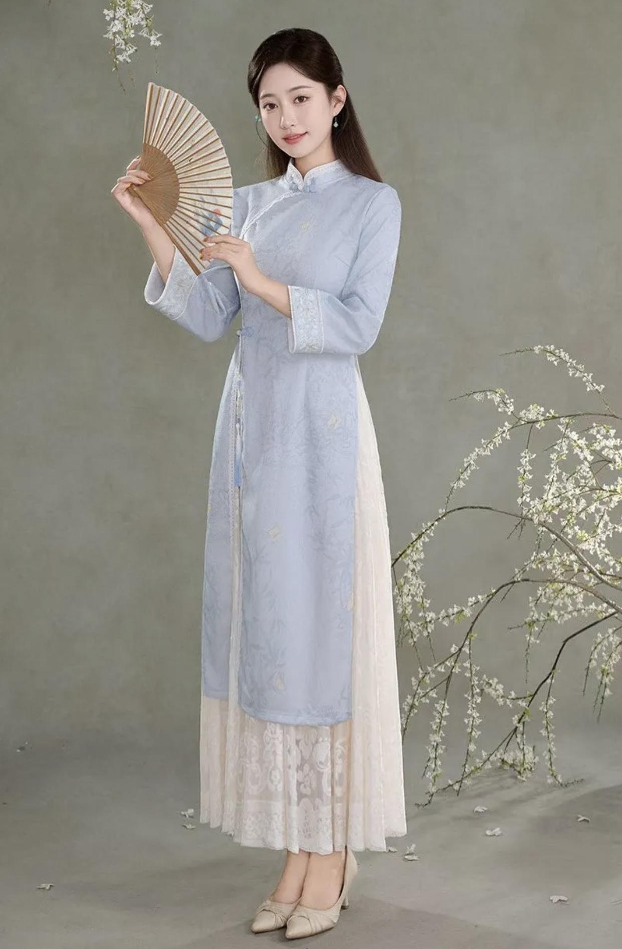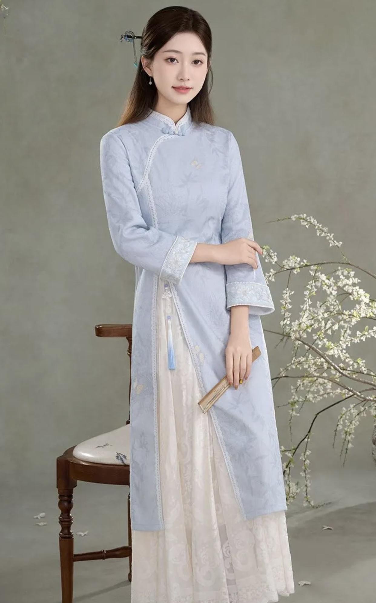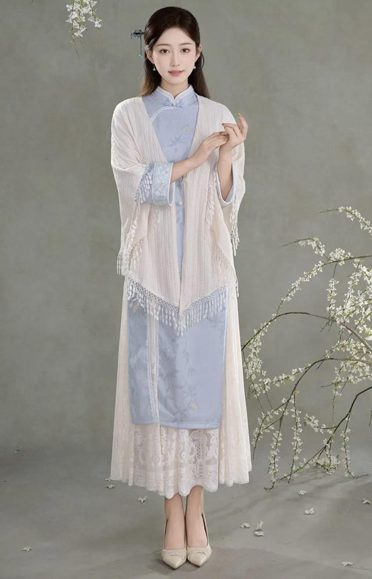 分享唯美的美照温柔蓝白搭配,古典优雅,宛如画中人