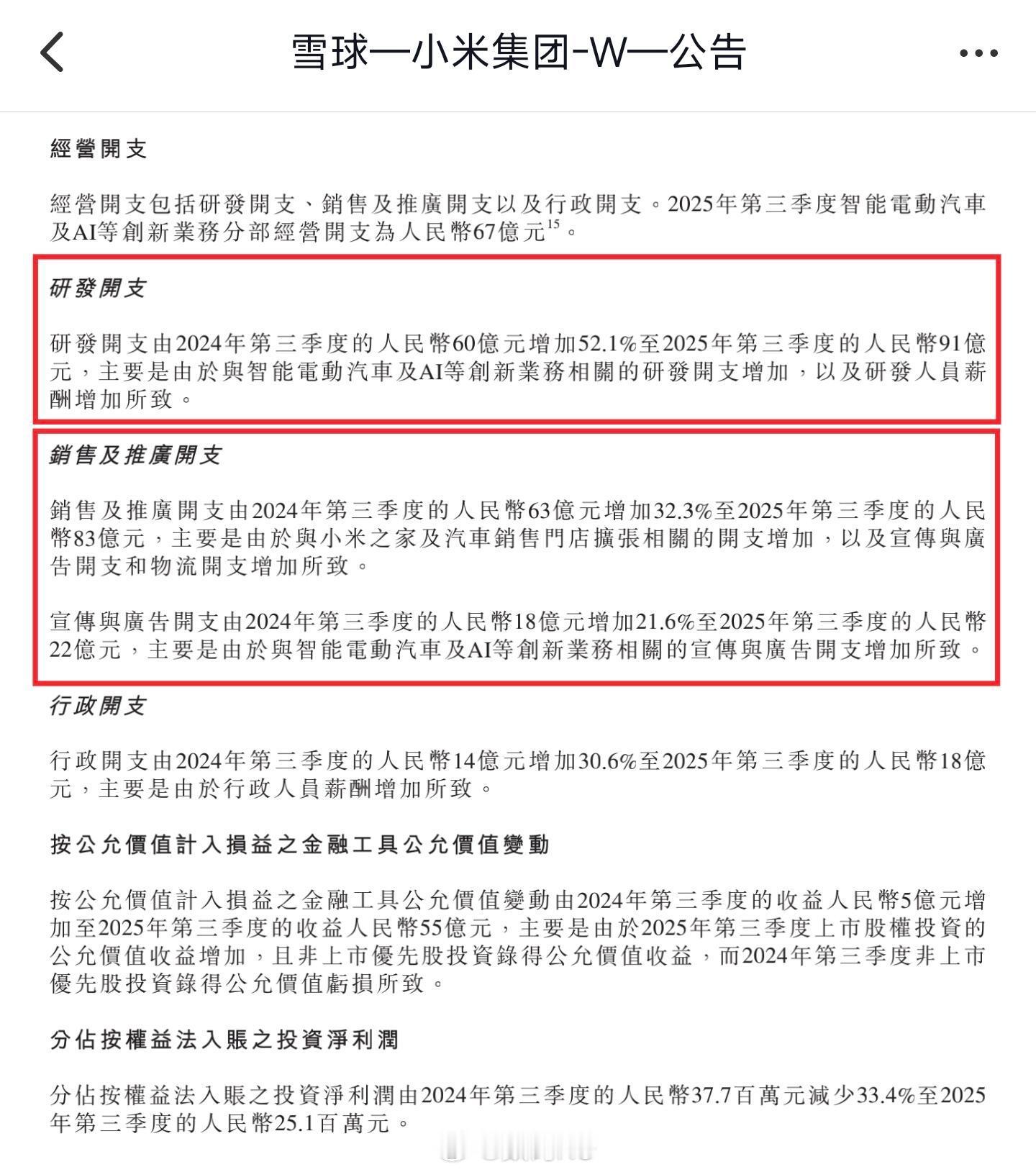 到底谁在说小米营销费用高,小米第三3季度宣传与广告开支仅22亿占本季度营收的1.94%,如果这个还高,可以去对比一下别的公司