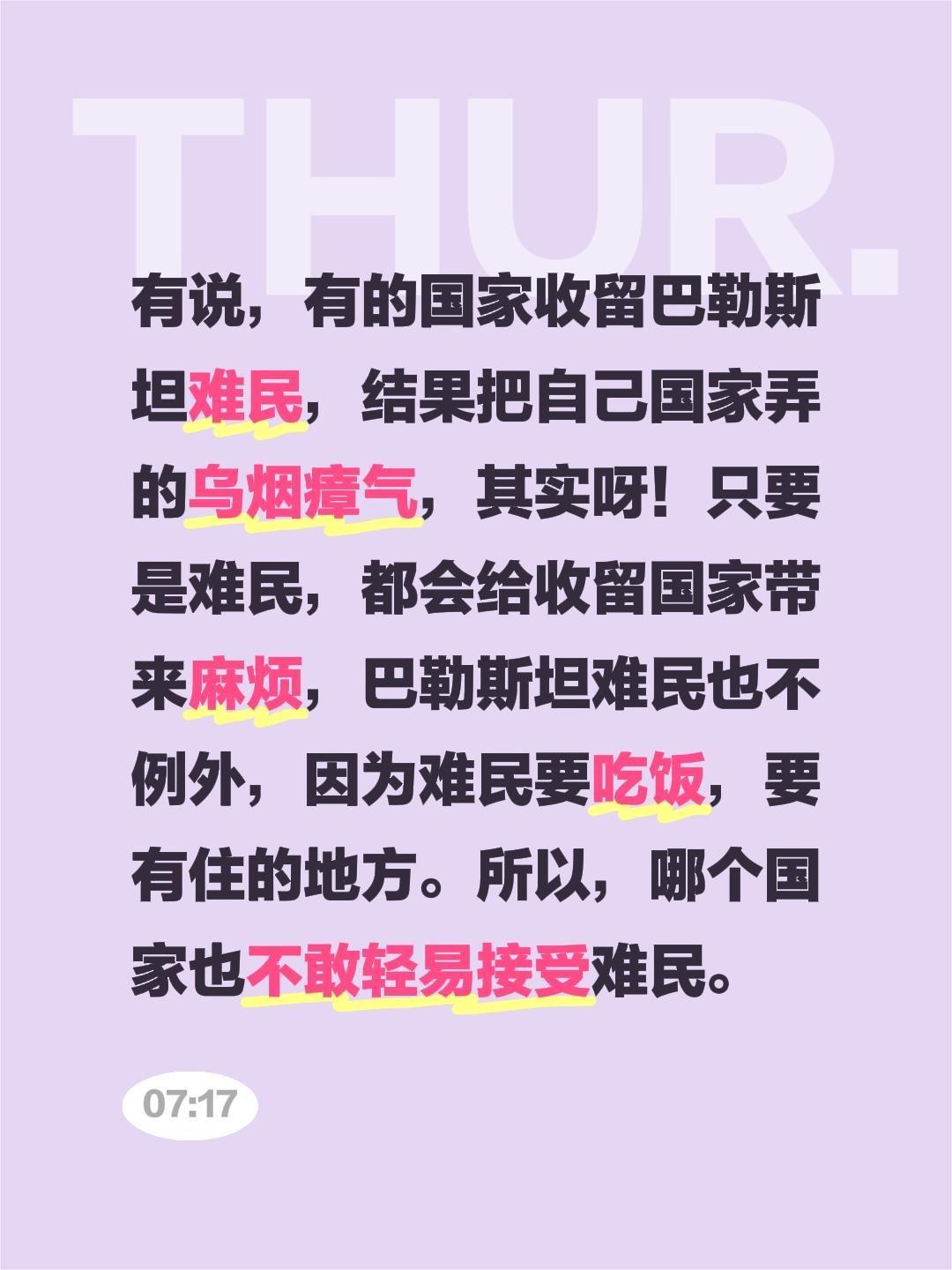我评论了@看潮起潮落 的作品: 有说,其它国家收留巴勒斯坦难民,结果把自己国家弄的乌烟瘴气,其实呀!只要是难民,都会给收留国家带来麻烦,巴勒斯坦难民也不例外,因为难民要吃饭,要住的地方。所以,哪个国家也不敢轻易接受难民。