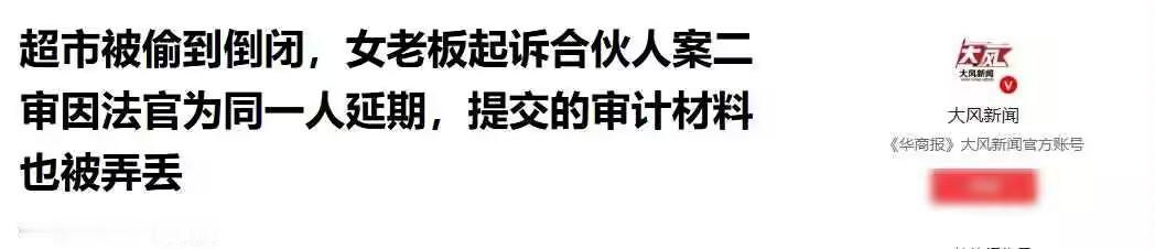 老板娘病倒,合伙人掌权,超市被掏空 赵小娴在内蒙古开了家超市,生意一直挺好,2021年初她丈夫生病住院,没法照顾店铺,就找来曹某某一起合伙经营,两人签了协议,曹某某拿出150万现金占了六成股份,赵小娴用价值100万的货物抵作四成股份,还把超市的经营权全部交给曹某某,她自己完全不再过问店里的事,想着这样就能专心照顾家人。 可这一放手,等于是把门钥匙递给了贼,从那以后店里没人盯着,员工和家属还有供货商都开始动手,有人偷吃巧克力,有人直接拿走商品,收银员刘某二更离谱,给她老公结账的时候,一千七百块的东西只收一块钱,还有人叫快递上门,把牛肉干和酒水打包寄走,系统里只留个五块钱的记录,赵小娴调出监控一看就傻眼了,十六个员工加上十三个亲属,全都参与了这件事。 2021年8月,赵女士向警方报案,警方调取了一百三十段视频作为证据,事实清楚明确,刘某二最终被判处两年三个月有期徒刑并处罚金六千元,但赵女士心里明白事情并没有结束,落网的只是团伙中的一个小头目,背后还有更大的势力未被查获,她认为那些真正该承担责任的人至今仍未受到追究。 其实事情早有迹象,2021年4月,有个刚来两个月的店经理悄悄告诉她,说系统被人改过,正价商品被调成折扣价卖,她马上做了一次整顿,结果那个人立刻辞职走了,连一万五月薪都留不住他,后来她想明白了,这人肯定是动了别人的利益,被挤对走了,那时候正是店里管理最松散的时候,也是偷盗行为最严重的阶段。 2022年4月,她起诉曹某某违约,要求对方赔偿损失,但因为双方没有完整账目,审计工作无法进行下去,2025年8月一审判决她败诉,她上诉后才发现,二审合议庭中还有原审法官张静,她提出回避申请,法院只说正在核实,至今也没有明确答复,更离谱的是,法院保管的两枚U盾作为关键财务凭证竟然丢失了,法院只是轻描淡写地说丢了就补办一个吧,但补办需要上万元费用,谁也不愿意承担这个责任。 最让这位女士感到心寒的,是那些被判处缓刑的员工现在又被曹某某招进新的超市上班,这显然不是巧合,而是明显的包庇行为,她想不通法院、警方甚至整个司法程序怎么会允许这种事情继续发生,明明有证据却卡在流程里,明明有人犯罪却还能换个地方继续工作。 这件事说到底,是合伙协议埋下的隐患,她把经营权完全交给曹姓合伙人,没有建立监督机制,也没有写入对账条款,更没有限制员工的行为,这在小型超市里很常见,大家都习惯相信熟人,总想着“都是自己人”,结果一出问题,捅刀子的往往就是这些所谓自己人,监控再清晰也防不住内部人串通一气,制度不完善的时候,信任反而成了漏洞。 她现在还在等待二审,关键证据却已经丢失,原来的法官仍然在岗位上,涉案人员也回到了工作岗位,整个过程就像被拖进泥潭,越挣扎陷得越深,她不指望能够赢回多少钱,只想弄明白一件事,为什么法律流程走到最后,反而帮助了偷东西的人。 她坚持着往前走,心里却明白这条路不容易,每次想起那家曾经热闹的超市现在变成一笔糊涂账,她就觉得问题不在钱上,而是人心变了,熟人之间的信任有时比合同还不可靠,签再多字也不如留些防备手段,可等她明白这个道理时,已经来不及了。